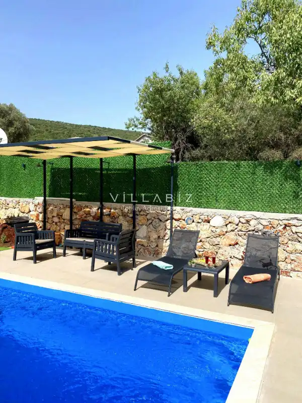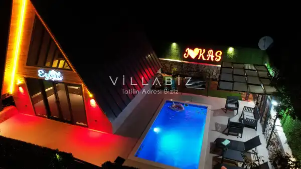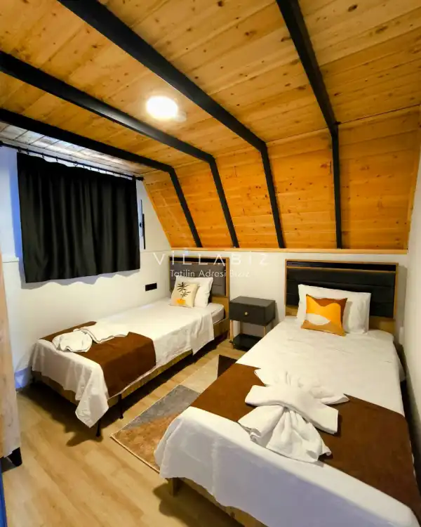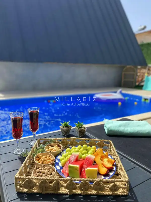 Toplam 2 yatak odasından oluşmuş, 4 kişi konaklama kapasitesine sahiptir. Balayı çiftleri ve çekirdek aileler için oldukça idealdir. Oldukça şık ve modern bir şekilde döşenmiş olan villamızda misafirlerimiz için her şey düşünülmüştür. Havuz terasında bulunan şezlonglarda güneşlenebilir, bahçe masasında muhteşem yemekler yiyebilir, salıncakta sallanıp keyifli dakikalar geçirebilirsiniz.