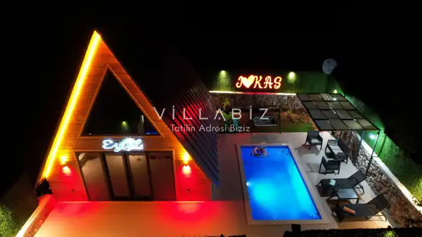 Villamız Antalya’nın en çok tercih edilen tatil bölgesi Kaş/Bayındır mevkiinde yer almaktadır. Masmavi koylara ve muhteşem adalar manzarasına hakim bir noktadadır. Doğa içerisinde, bol oksijenli tertemiz havasıyla konaklayanlarına sağlıklı ve dingin bir tatilin kapılarını aralamaktadır