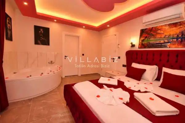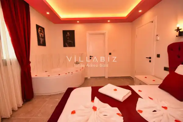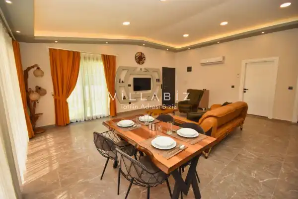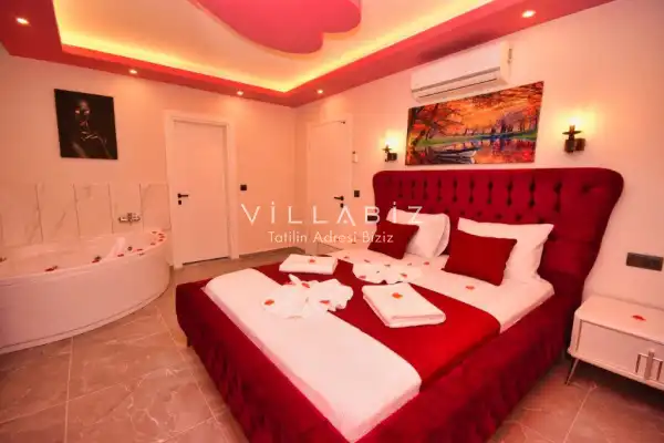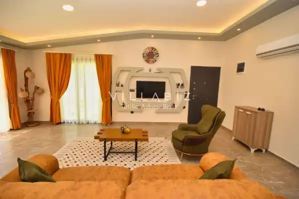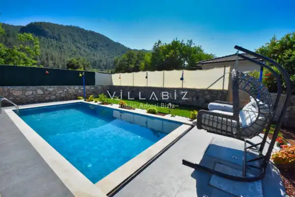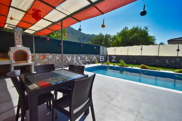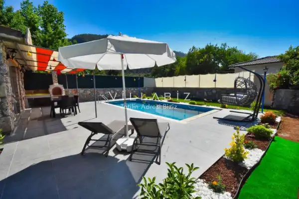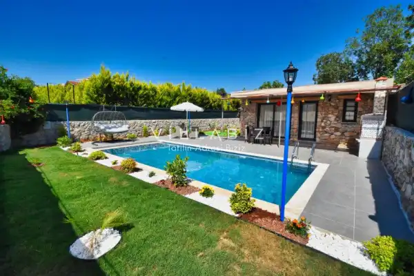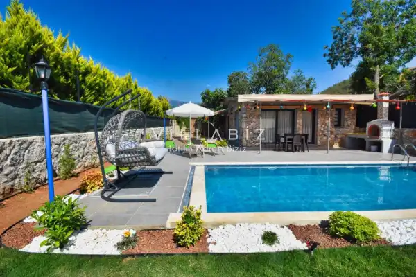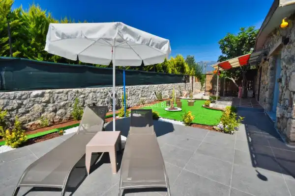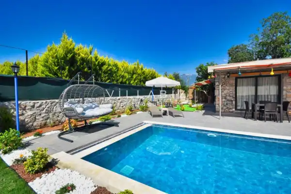 It is located in Kayaköy, which is considered the most popular historical and touristic place of Fethiye, which is home to old historical Greek houses. The villa has a large garden among greenery. With its sheltered pool and garden area, it is among the ideal rental villa options for those who want to spend their holiday away from the outside and for families who are fanatical. You can enjoy the tiredness of the year and the holiday in the best way.