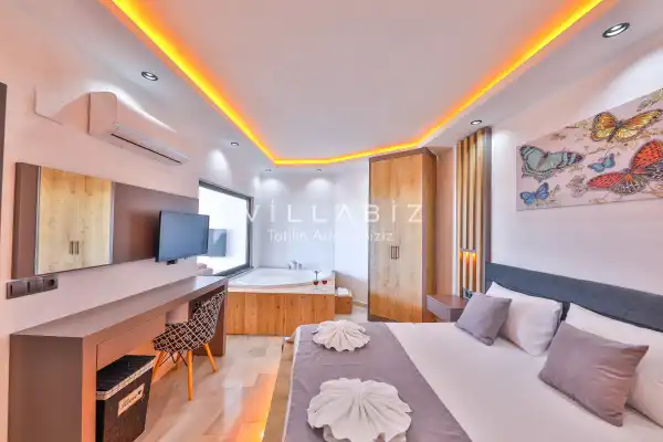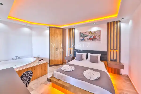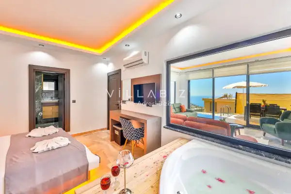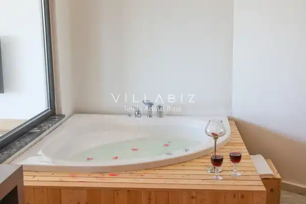 Our villa, which has a magnificent sea view, is ideal for honeymoon couples due to the sheltered structure of the pool terrace. You can sip your drinks against the sunset with your loved ones and enjoy the view. The jacuzzi in our villa will help you relax and get rid of the tiredness of the whole year.