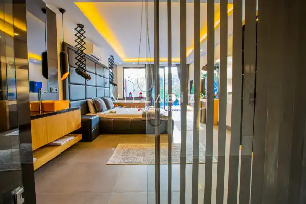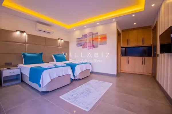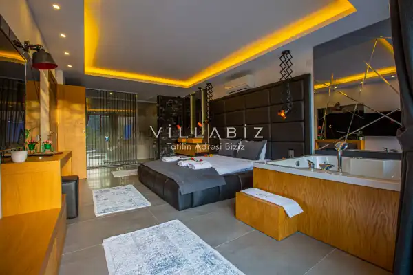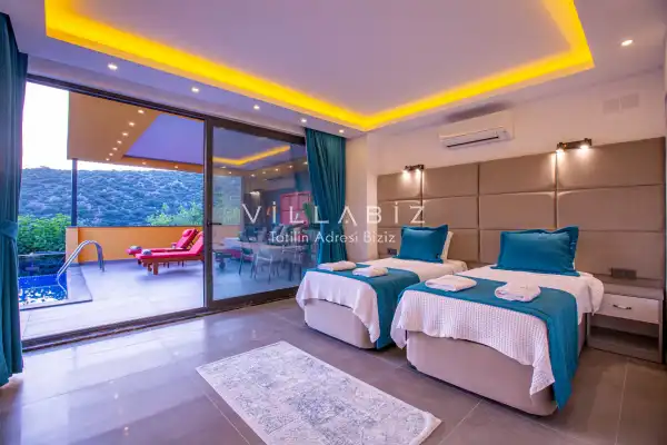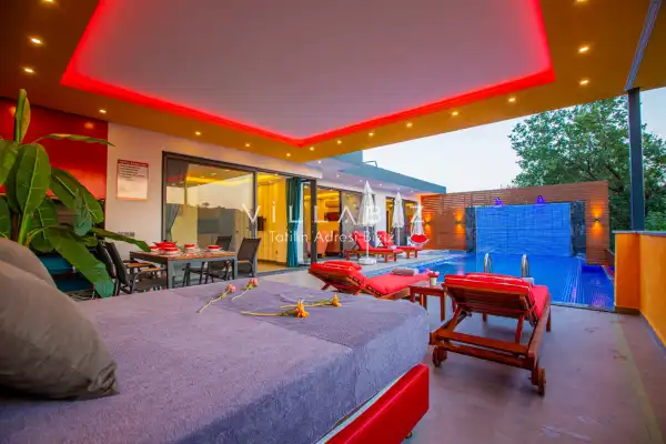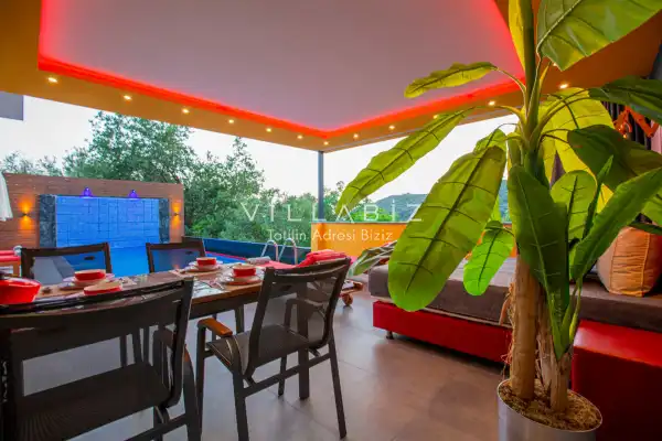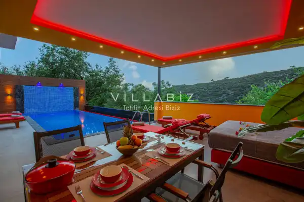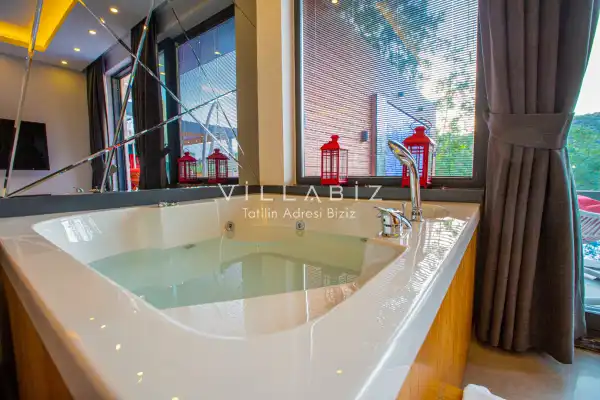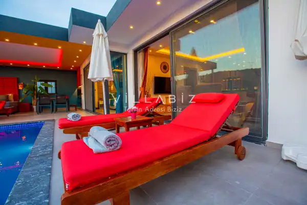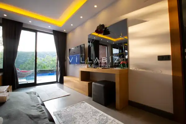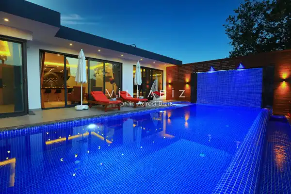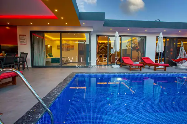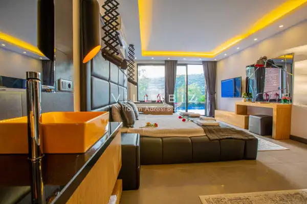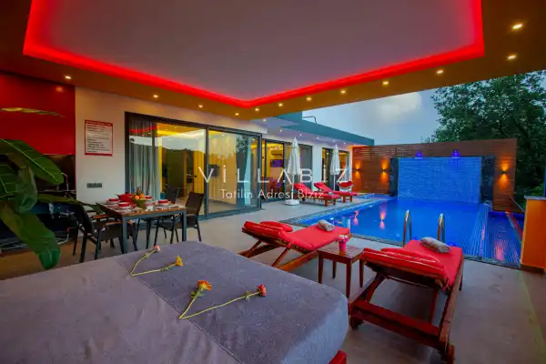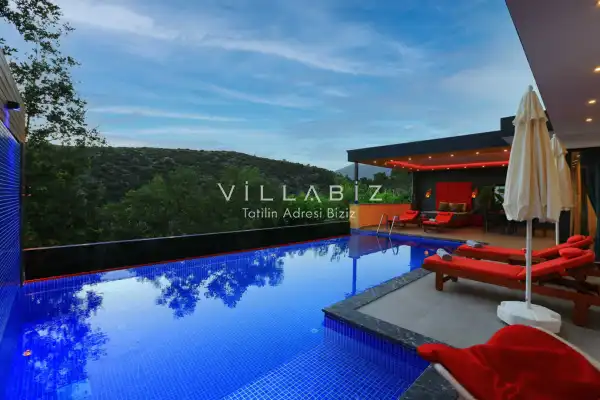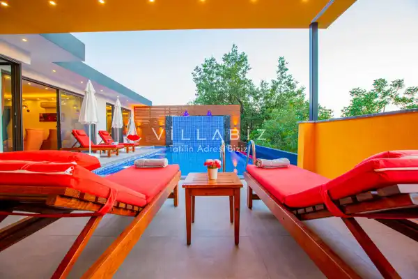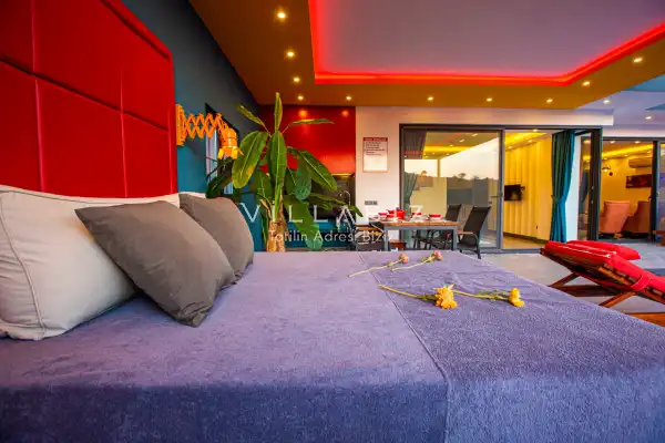 Our villa is located in the Üzümlü area of Kalkan, the calmest region of Antalya and with the deep blue fascination of the Mediterranean bays. The pine and cedar forests surrounding it combine with the perfect maquis climate; With its location where the end always reaches the endless blue, it makes every moment special and unforgettable for our honeymoon couples who want a perfect holiday. With its proximity to touristic areas such as Patara Beach, Kaputaş Beach, Saklıkent Canyon, and Secretkent Waterfall, it offers a holiday opportunity to explore the surroundings without getting stuck in traffic.
