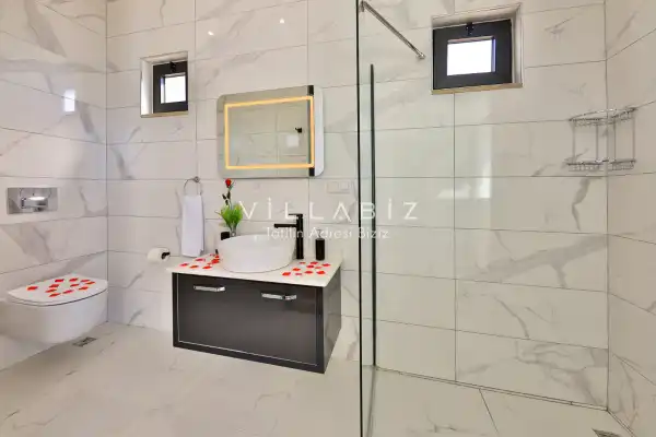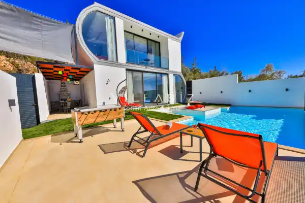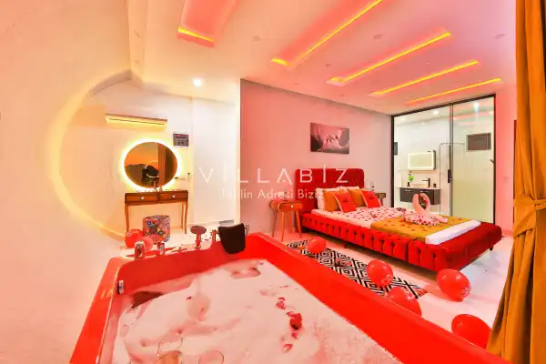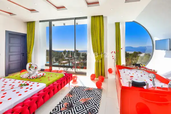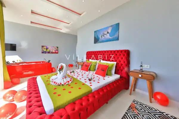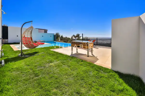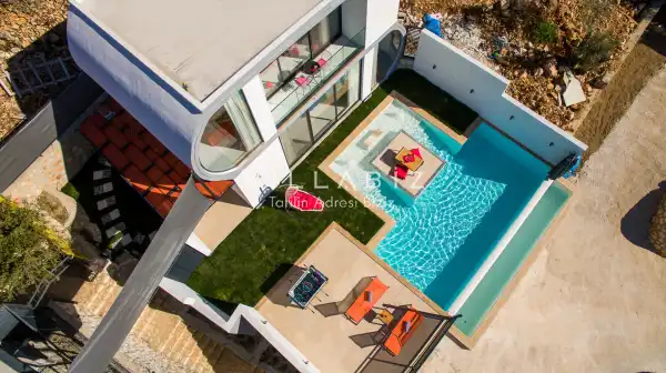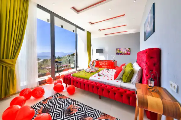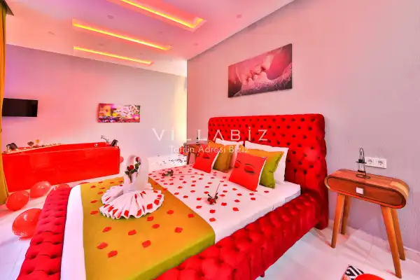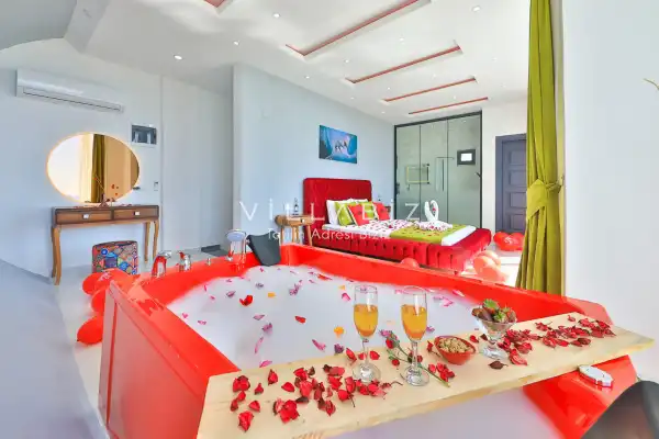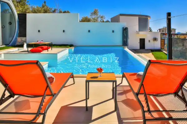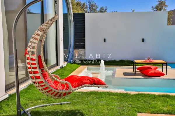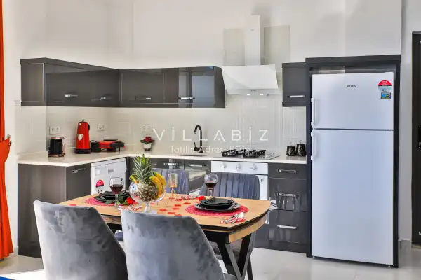 Villa Alyans has 1 bedroom in the villa with a capacity of 2 people. The villa has a bathroom and a jacuzzi in the bedroom. It has an open kitchen and its own garden. The kitchen has a dishwasher, refrigerator, built-in oven, and almost all the utensils needed in the kitchen. There is a private pool in the garden of the villa. Barbecue, table, chairs, sun loungers and umbrellas allow you to enjoy the garden without limits. In the living room, there is a seating group, television and furniture, while there is separate air conditioning for all rooms.