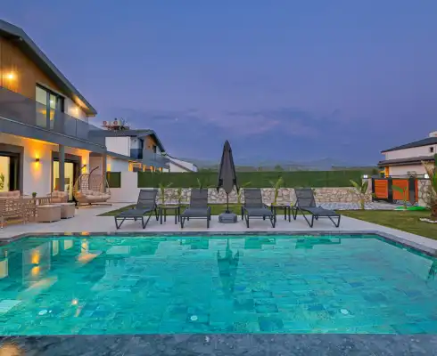 Villa Angora 4 is a charming villa with a private garden and a secluded pool located in the Çalış area of Fethiye. The private swimming pool is completely protected from outside view, ensuring privacy for guests seeking a tranquil holiday.