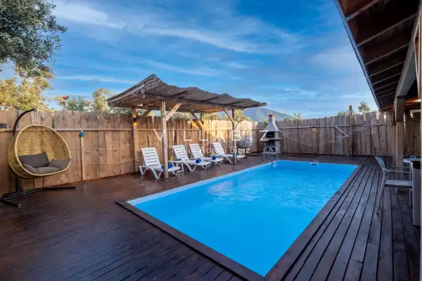 Villa Arce has a capacity of 4 people and has 2 bedrooms. It has an open kitchen and a pool in its own garden. The kitchen has a dishwasher, refrigerator, built-in oven, toaster and almost all the utensils needed in the kitchen. There is a private pool in the garden of the villa. Barbecue, table, chairs, sun loungers and umbrellas allow you to enjoy the garden without limits. While the living room has a seating area, television and furniture, there is separate air conditioning for all rooms.