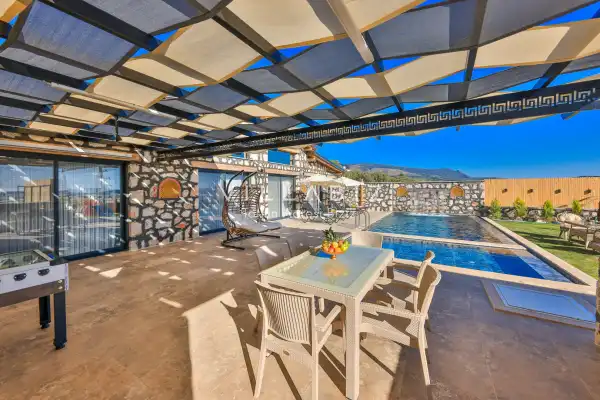 Our villa is located in Kaş/Kalkan Çavdır location, one of the most popular holiday centers of Antalya, which is the first city that comes to mind when it comes to holiday. Çavdır locality, extending from the coast to the plateaus, offers its guests a peaceful and healthy holiday in touch with nature, with its oxygen-filled air.