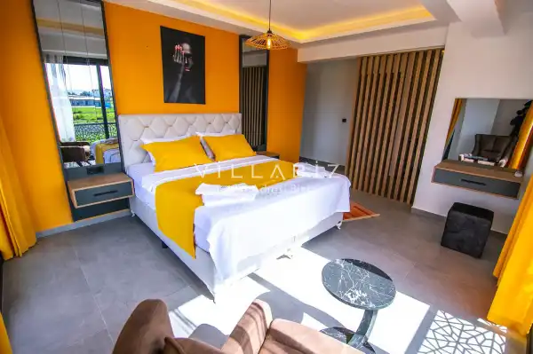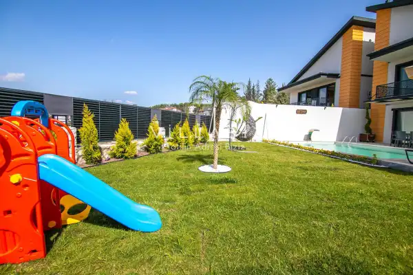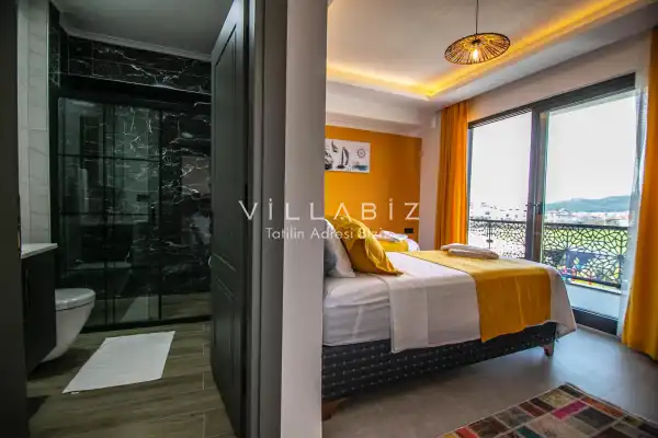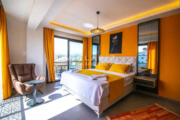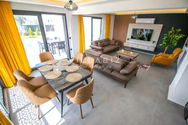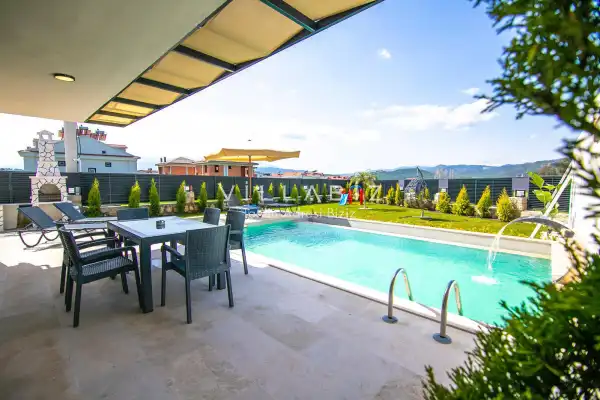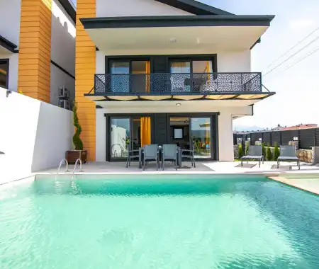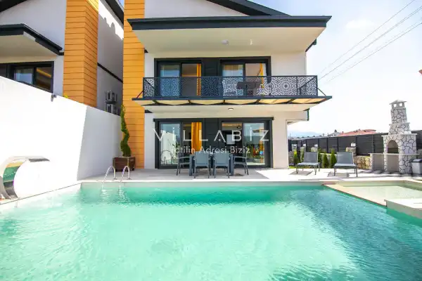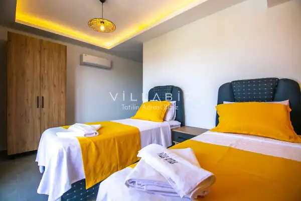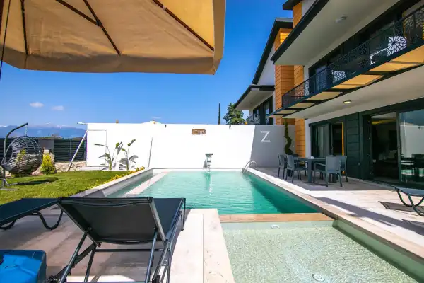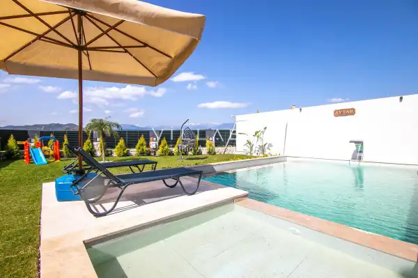 Villa Aytar 1 is our villa with a cute garden and a private pool, located in Fethiye/Seydikemer Gerişburnu area. It consists of 2 bedrooms in total and has an accommodation capacity of 4 people. It is ideal for nuclear families and honeymoon couples. Everything has been considered for our guests in our villa, which is furnished in a very stylish and modern way. You can sunbathe on the sun loungers on the pool terrace, eat delicious meals at the garden table, or swing on the swings and have pleasant moments.