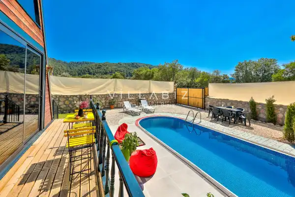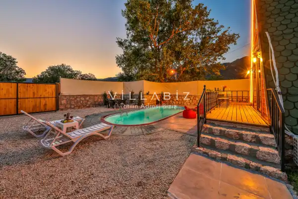 Villa Bir İnci has 2 bedrooms in the villa with a capacity of 4 people. It has an open kitchen and a pool in its own garden. The kitchen has a dishwasher, refrigerator, built-in oven and almost all the utensils needed in the kitchen. Barbecue, table, chairs, sun loungers and umbrellas allow you to enjoy the garden without limits. In the living room, there is a seating group, television and furniture, while there is separate air conditioning for all rooms.