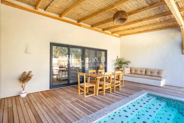 Villa Casa Da Baer, has a capacity of 4 people and has 2 bedrooms. The villa has a bathroom in both rooms and a jacuzzi in one bedroom. It has an open kitchen and its own garden. The kitchen has a dishwasher, refrigerator, built-in oven, and almost all the utensils needed in the kitchen. There is a private pool in the garden of the villa. Barbecue, table, chairs, sun loungers and umbrellas allow you to enjoy the garden without limits. In the living room, there is a seating group, television and furniture, while there is separate air conditioning for all rooms.