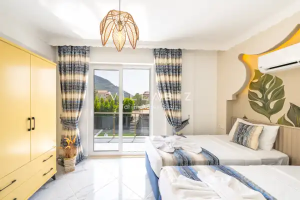 Our villa is located in Hisarönü, one of the most trendy holiday destinations in Fethiye in recent years. It is a 5-minute drive from Ölüdeniz Beach, one of the world's most famous beaches and awarded the Blue Flag. Located just 5 minutes from the city center, our villa offers guests a very comfortable and enjoyable holiday thanks to its central location. Being very close to Hisarönü, famous for its entertainment venues, our villa is the perfect choice for a wonderful holiday in every respect. You can unwind from the year's fatigue and enjoy your holiday to the fullest at Villa Dinyeper Duo.