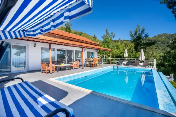 Our villa is located in İslamlar area, one of the quiet locations of Kaş/Kalkan holiday resort. It has become a favorite for villa holidays in recent years. It provides a luxurious holiday opportunity to its guests with its location surrounded by forests, where you can reach the center in 5 minutes by car, and its magnificent view.