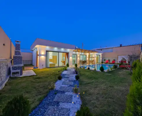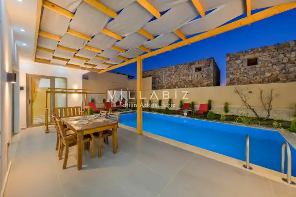 Located in the Çamköy region of Fethiye district of Muğla, Villa Arce promises you a peaceful holiday. Çamköy is an ideal location for those who want to get away from the crowd and seek tranquility. The village is surrounded by nature, where fresh fruits and vegetables can be accessed from its branches; It offers a serene holiday opportunity among greenery. Villa Efsa 2 has a capacity of 4 people and has 2 bedrooms. You can enjoy relaxing with the jacuzzi in our villa. It has an open kitchen and a pool in its own garden. The kitchen has a dishwasher, refrigerator, built-in oven, and almost all the utensils needed in the kitchen. There is a private pool in the garden of the villa. Barbecue, table, chairs, sun loungers and umbrellas allow you to enjoy the garden without limits. While the living room has a seating area, television and furniture, there is separate air conditioning for all rooms. Extras: The villa is delivered to the guests clean and cleaning is done at the end of the first week for two-week stays. Linen and towel changes are also made during these cleanings. Important informations: Electricity, water and gas fees are included in the villa rental price. Additionally, no fee is requested. Extra cleaning, extra new sheets and towels, rental car, guidance services, healthcare, etc. Insurance is not included in the prices. All our villas located in nature are sprayed regularly. Despite this, there are butterflies, insects, flies, etc. around. There is a possibility of being found. Infrastructure works can be carried out periodically in the regions where our villas are located. Due to this work, road works, electricity and water outages may occur. Damage Deposit: Damage, loss, broken, broken, etc. A deposit of 3000 TL is required at the entrance. The deposit is refunded upon leaving the villa if there is no problem such as damage, damage or loss.
