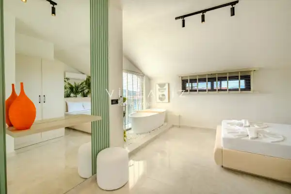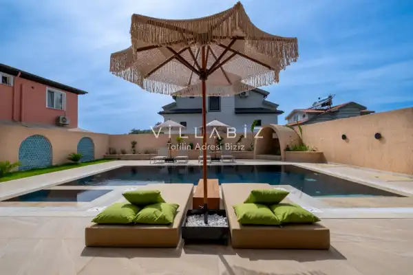Our villa is located in Hisarönü, Fethiye, which has taken its place at the top among the trendiest holiday destinations of recent years. It is a 5-minute drive from Blue Flag award-winning Ölüdeniz Beach, one of the most famous beaches in the world. Located only 5 minutes away from the city center, our villa offers its guests a very comfortable and entertaining holiday opportunity thanks to its central location. Our Villa, which is very close to Hisarönü, famous for its entertainment venues in Fethiye, is a perfect choice for you to have a nice holiday in every respect. You can relieve the tiredness of the year and enjoy your holiday in the best way at Villa Efterya 4.