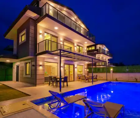 Villa Evo is a charming villa with a private garden and a secluded pool located in the Patlangıç area of Fethiye. The private swimming pool is completely protected from outside view, ensuring privacy for guests seeking a tranquil holiday.