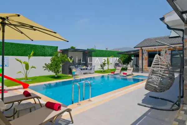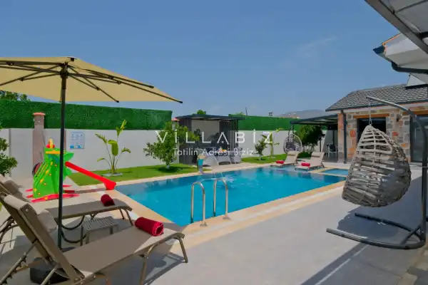 Our villa is located in Çiftlik location, which is the center of Fethiye and known for its location in nature. It offers an extraordinary experience to its guests with its proximity to beaches such as Calis Beach and Akmaz Bay and the endless peace it offers you when you retire to your home.