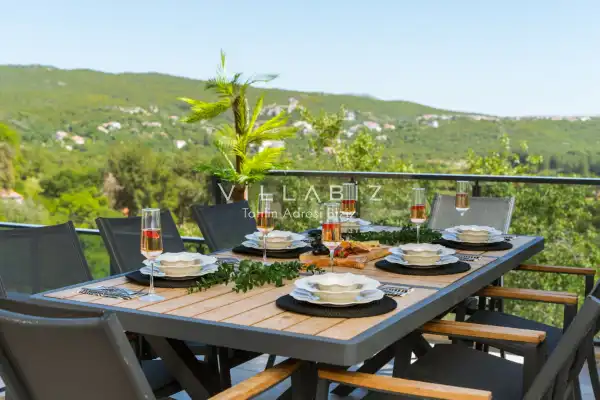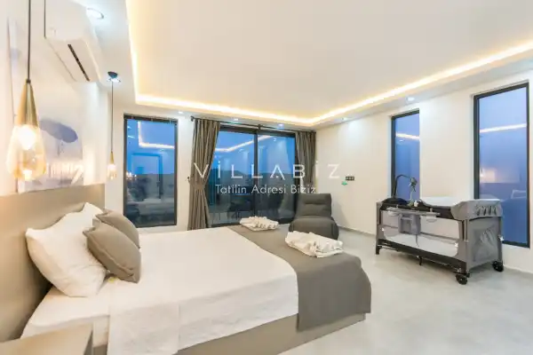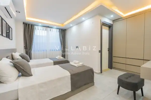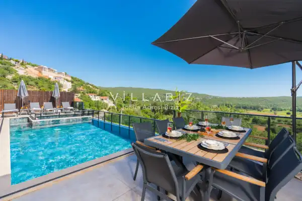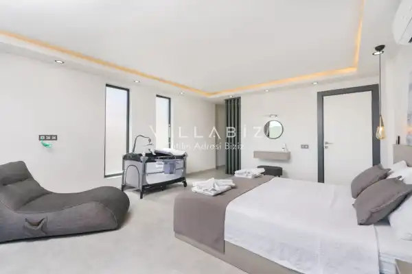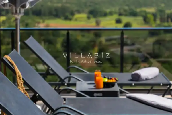 It consists of a total of 3 bedrooms and has an accommodation capacity of 6 people. It is ideal for large families and large groups of friends. Everything has been thought of for our guests in our villa, which is furnished in a very stylish and modern way. You can sunbathe on the sun loungers on the pool terrace, eat wonderful meals at the garden table, swing on the swing and spend pleasant moments.
