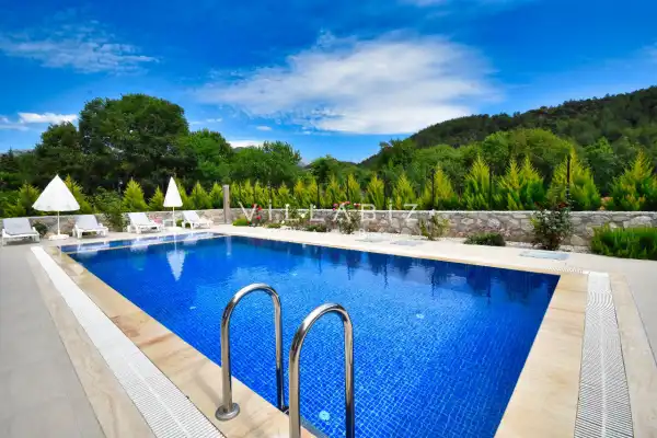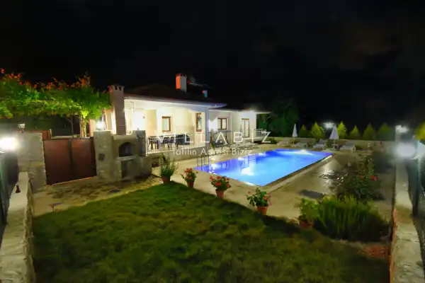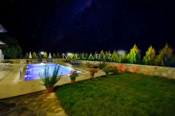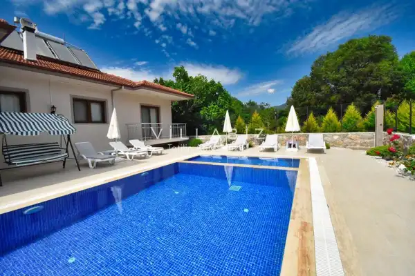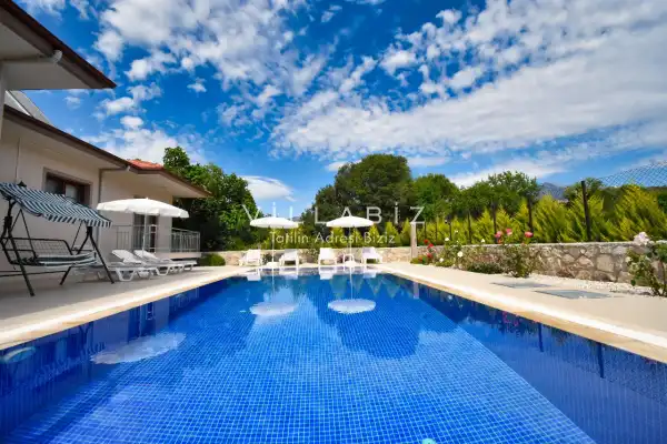 It is located in Kayaköy, which is considered the most popular historical and touristic place of Fethiye, which is home to old historical Greek houses. Villa Huzur has a large garden among greenery. With its sheltered pool and garden area, it is among the ideal rental villa options for those who want to spend their holiday away from the outside and for families who are fanatical. You can enjoy the tiredness of the year and the holiday in the best way in Villa Huzur.