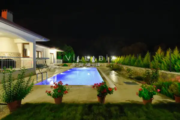 With its sheltered pool and garden area, it is among the ideal rental villa options for those who want to spend their holiday away from the outside and for families who are fanatical.