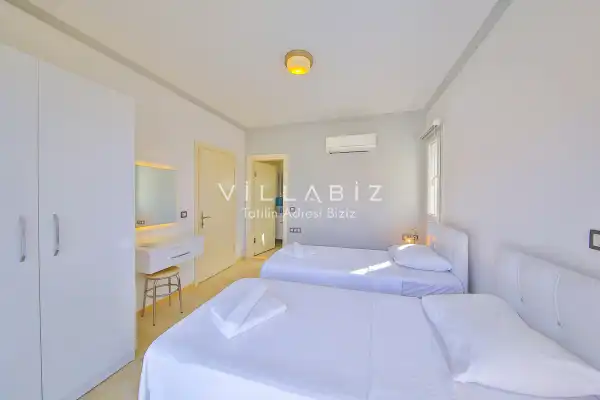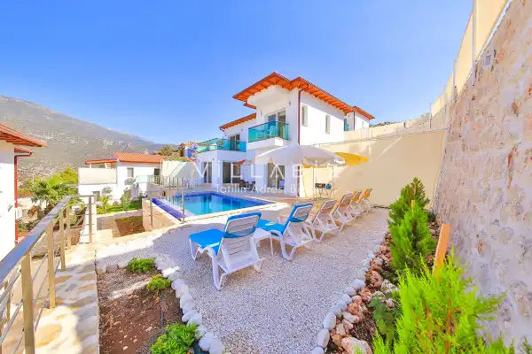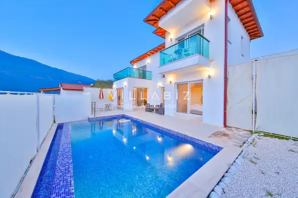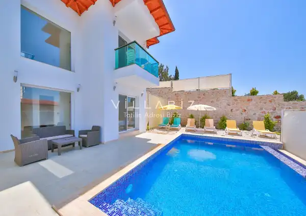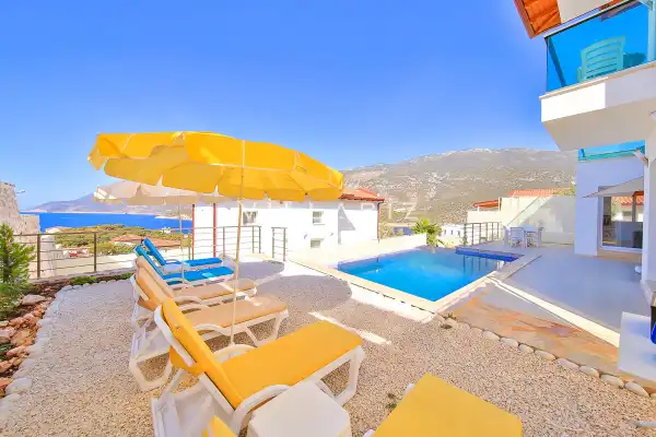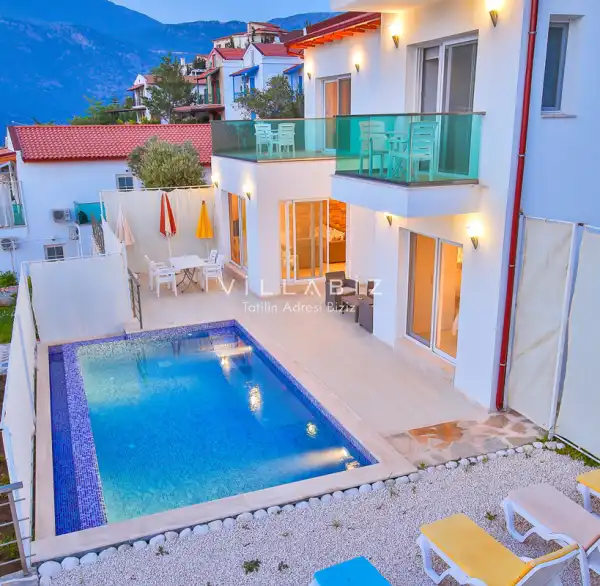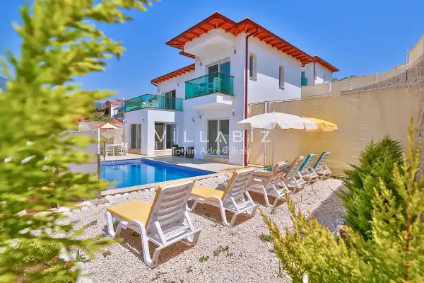 Our villa is located in Çukurbağ area of Kaş/Kalkan, the most preferred holiday region of Antalya. It is at a point that dominates the azure bays and magnificent islands view. It opens the doors of a healthy and peaceful holiday to its guests with its clean air with plenty of oxygen in nature. * Since our villa has a location in nature, in the surrounding area; butterfly, insect, fly etc. There is a possibility, it is quite natural. It consists of 3 bedrooms in total and has an accommodation capacity of 6 people. It is ideal for honeymooners, nuclear families and groups of friends that are not crowded. Everything has been thought of for our guests in our villa, which is furnished in a very stylish and modern way. You can sunbathe on the sun loungers on the pool terrace, eat wonderful meals at the garden table, swing on the swing and spend pleasant moments. Our villa, which has a magnificent sea view, is ideal for honeymoon couples due to the sheltered structure of the pool terrace. You can sip your drinks against the sunset with your loved ones and enjoy the view. The jacuzzi in our villa will help you relax and get rid of the tiredness of the whole year. Extras: The villa is delivered to the guests in a clean manner and cleaning is done at the end of the first week for two-week stays. Bed linen and towel changes are also made during these cleanings. Important informations: Electricity, water, gas fees are included in the rental price of the villa. Also, no fee is required. Extra cleaning, extra new sheets and towels, rental car, guidance services, health etc. Insurance is not included in the prices. In all our villas, which have a location in nature, spraying is done regularly. Despite this, there are butterflies, insects, flies, etc. in the environment. is likely to be found. Infrastructure works can be done periodically in the regions where our villas are located. Due to this work, road works, electricity and water cuts may occur. Damage Deposit: Damage, loss, broken, dump, etc. A deposit of 4500 TL is required at the entrance. The deposit is returned at the exit of the villa if there is no problem such as broken, damaged or lost.
