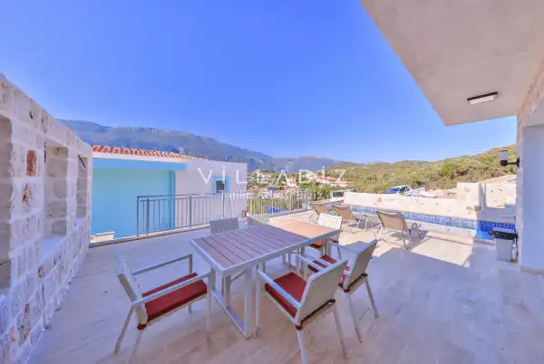 Villa Kanyon Olivia, a luxurious villa with a private pool and panoramic sea views, is conveniently located near the center of Kaş. It's meticulously designed for large families and groups of friends dreaming of a romantic and exclusive holiday. Its sea view concept and private swimming pool offer a secluded, peaceful, and comfortable stay.