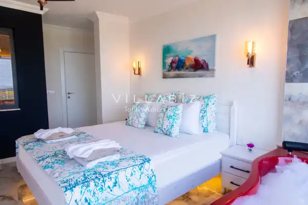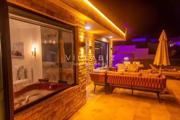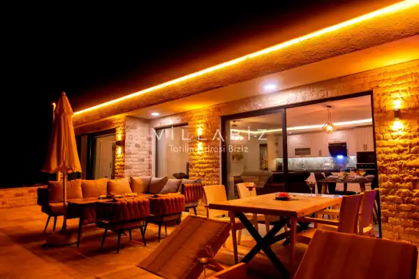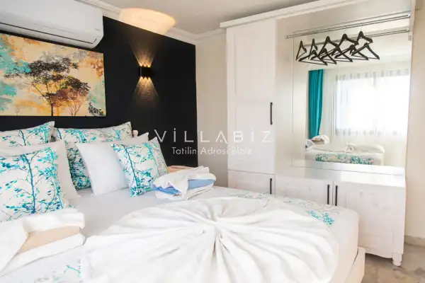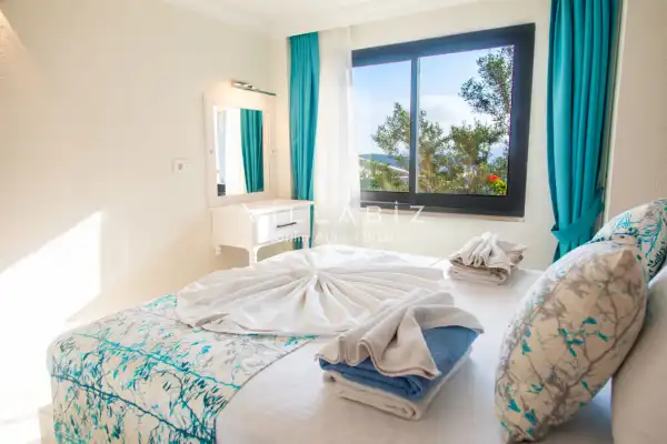 Our villa, which has a magnificent sea view, has an accommodation capacity of 4 people. You can sip your drinks against the sunset with your loved ones and enjoy the view. At the same time, our villa, which is located close to the center and the beach, offers a pleasant holidayl opportunity to our valued guests. Extras: The villa is delivered to the guests in a clean manner and cleaning is done at the end of the first week for two-week stays. Bed linen and towel changes are also made during these cleanings. Important informations: Electricity, water, gas fees are included in the rental price of the villa. Also, no fee is required. Extra cleaning, extra new sheets and towels, rental car, guidance services, health etc. Insurance is not included in the prices. In all our villas, which have a location in nature, spraying is done regularly. Despite this, there are butterflies, insects, flies, etc. in the environment. is likely to be found. Infrastructure works can be done periodically in the regions where our villas are located. Due to this work, road works, electricity and water cuts may occur. Damage Deposit: Damage, loss, broken, dump, etc. A deposit of 5000 TL is required at the entrance. The deposit is returned at the exit of the villa if there is no problem such as broken, damaged or lost.