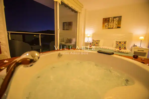 Our villa, which has a magnificent sea view, is ideal for honeymoon couples due to the sheltered structure of the pool terrace. You can sip your drinks against the sunset with your loved ones and enjoy the view. The jacuzzi in our villa will help you relax and get rid of the tiredness of the whole year.