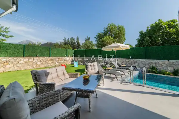 It is located in Kayaköy, which is considered the most popular historical and touristic place in Fethiye and hosts old historical Greek houses. Villa Likya Kaya has a large garden among greenery. With its sheltered pool and garden area, it is among the ideal rental villa options for those who want to spend their holidays away from outside eyes and for fanatic families. You can relieve the tiredness of the year and enjoy your holiday in the best way at Villa Likya Kaya.