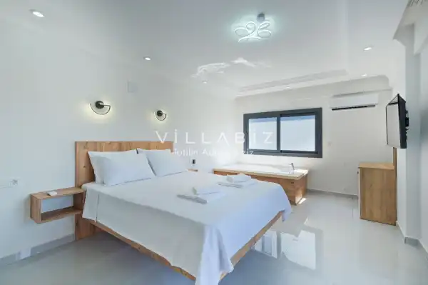 Villa Mesk , located in Çalış, a famous beach area of Fethiye, is 2.5 km from Çalış Beach. Its architecture makes it a prominent feature in searches for "villa suitable for large families" and "villa near the beach" in Fethiye. Villa Mesk offers a special accommodation experience suitable for large families, where they can not only relax but also create unforgettable memories.