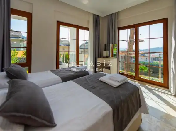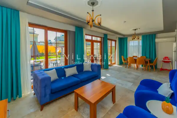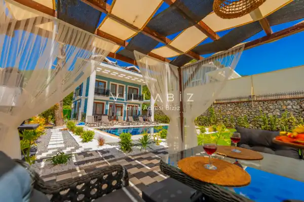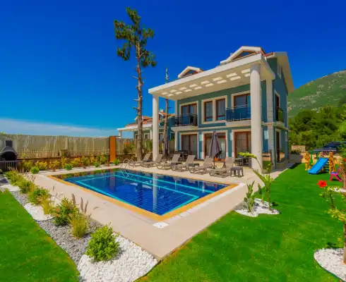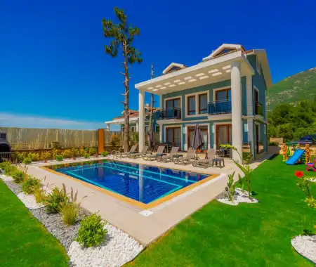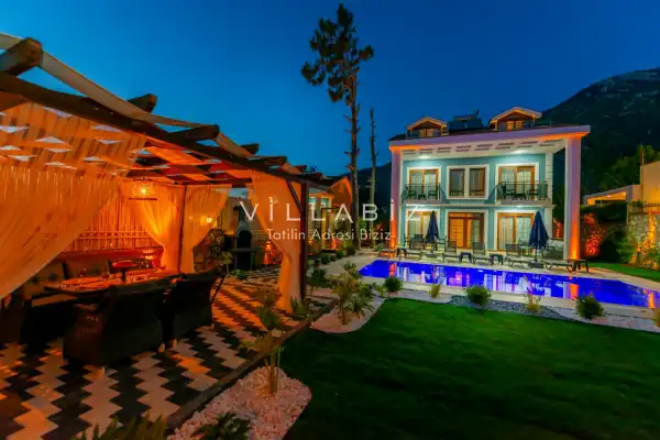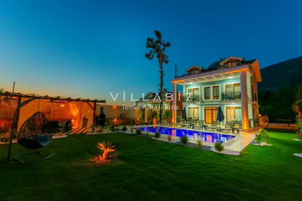 Villa Morti 2 is a private holiday villa located in a secluded spot in Ölüdeniz, renowned for its unique natural beauty and turquoise sea. Surrounded by nature and offering a peaceful atmosphere, this villa is suitable for large families and is a popular choice among those searching for villas with private pools. It provides a comfortable, enjoyable, and secure stay for large families and groups of friends.