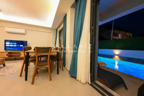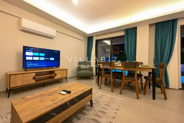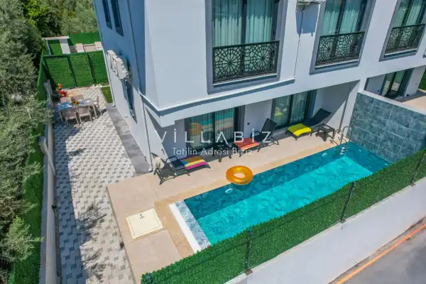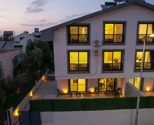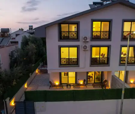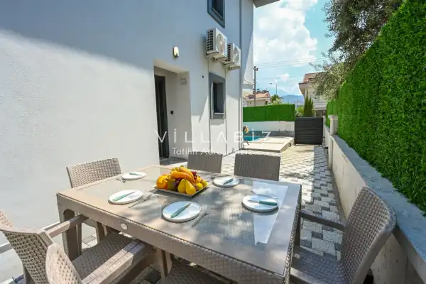 Villa Palmira Duo is a charming villa with a private garden and a secluded pool, located in the Babataşı area of Fethiye. The private swimming pool is completely protected from outside view, ensuring privacy for guests seeking a tranquil holiday.