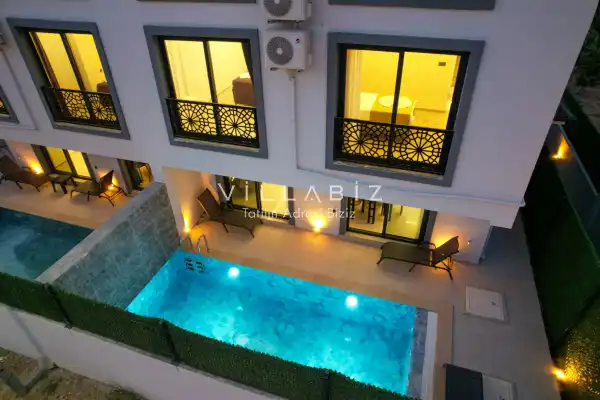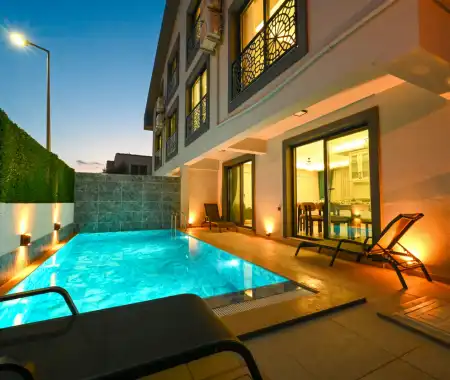 Villa Palmira Trio is a charming villa with a private garden and a secluded pool, located in the Babataşı area of Fethiye. The private swimming pool is completely protected from outside view, ensuring privacy for guests seeking a tranquil holiday.