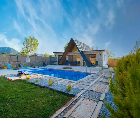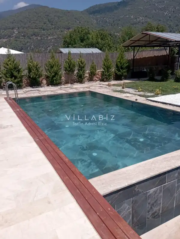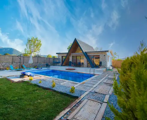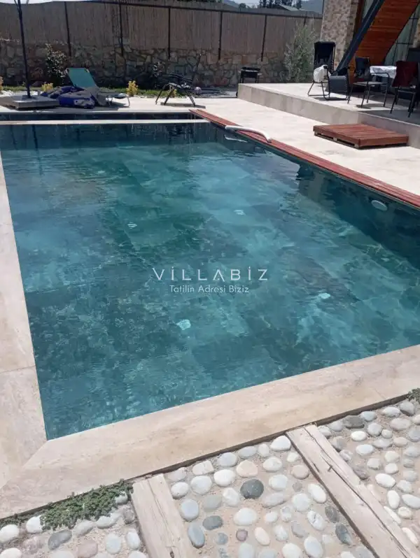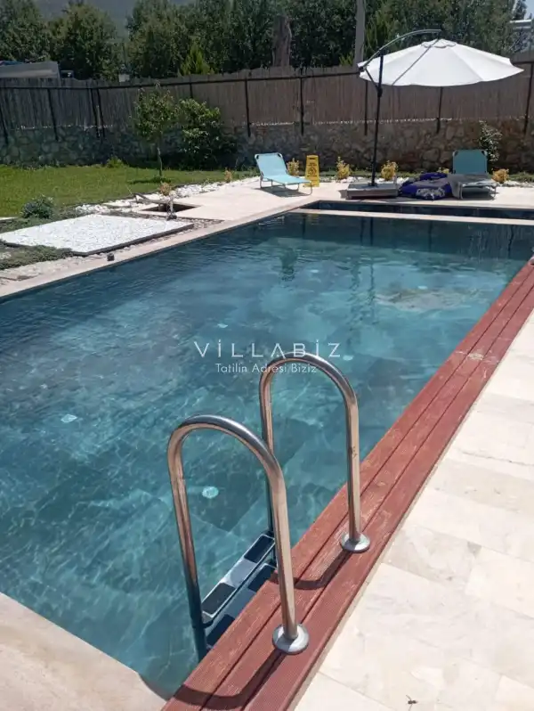 Villa Saat is a charming villa with a private garden and a secluded pool located in the Yeşilüzümlü area of Fethiye. The private swimming pool is completely protected from outside view, ensuring privacy for guests seeking a tranquil holiday.