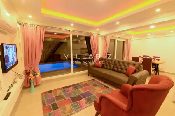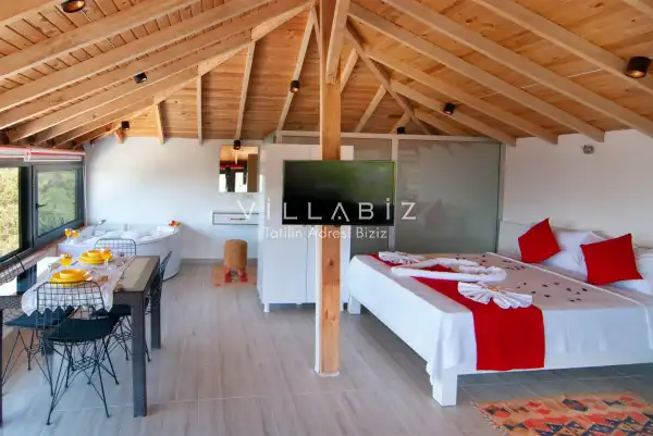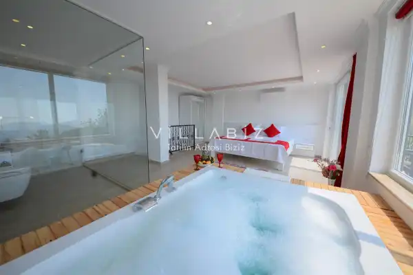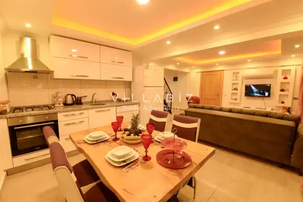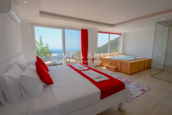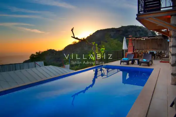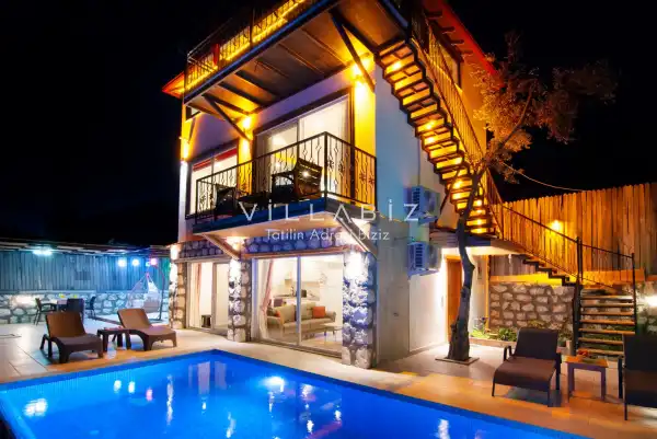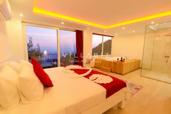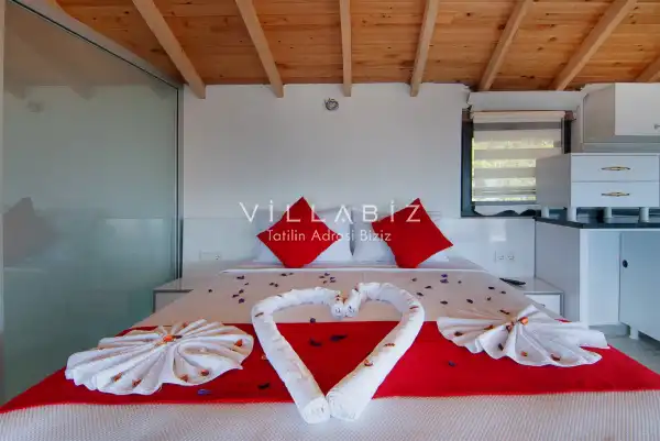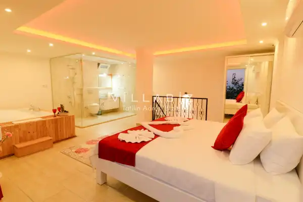 Our villa is located in the Üzümlü area of Kalkan, the calmest region of Antalya and with the deep blue fascination of the Mediterranean bays. The pine and cedar forests surrounding it combine with the perfect maquis climate; With its location where the end always reaches the endless blue, it makes every moment special and unforgettable for our honeymoon couples who want a perfect holiday. With its proximity to touristic areas such as Patara Beach, Kaputaş Beach, Saklıkent Canyon, and Secretkent Waterfall, it offers a holiday opportunity to explore the surroundings without getting stuck in traffic.