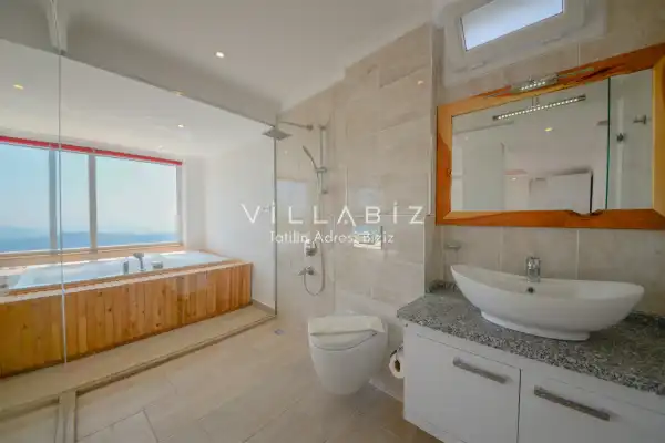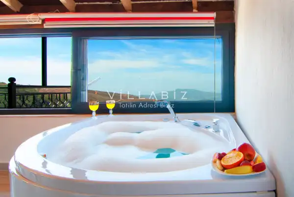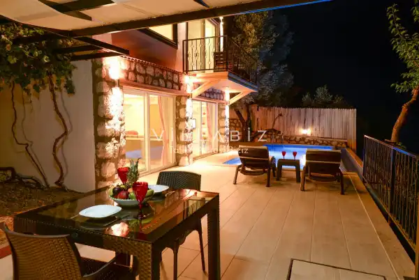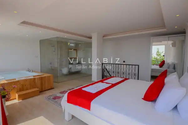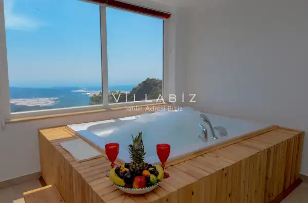 Located in the Kalkan Üzümlü region, Villa Saten is one of our 2-bedroom villa options with an accommodation capacity of 4 people. Honeymoon couples and nuclear families can enjoy their stay in our villa, which has a sheltered pool area. The main and second bedrooms have a double bed, a jacuzzi and an en-suite bathroom. Our villa offers a unique holiday opportunity.