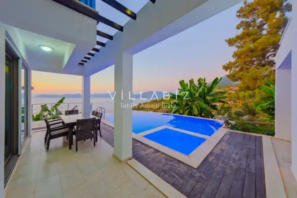 Our villa, which has a magnificent sea view, is ideal for conservative families and honeymooners due to the sheltered structure of the pool terrace. You can sip your drinks against the sunset with your loved ones and enjoy the view. The jacuzzi in our villa will help you relax and get rid of the tiredness of the whole year.