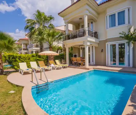 Villa Sunset 3, located in Çalış, a famous beach area of Fethiye, is within walking distance of Çalış Beach. Its architecture makes it a prominent feature in searches for "villa suitable for large families" and "villa near the beach" in Fethiye. Villa Sunset 3 offers a special accommodation experience suitable for large families, where they can not only relax but also create unforgettable memories.