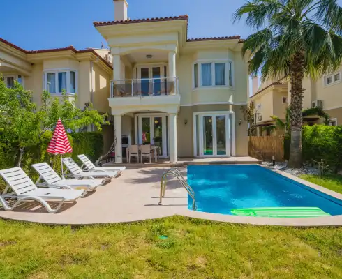 Villa Sunset 4, located in Çalış, a famous beach area of Fethiye, is within walking distance of Çalış Beach. Its architecture makes it a prominent feature in searches for "villa suitable for large families" and "villa near the beach" in Fethiye. Villa Sunset 4 offers a special accommodation experience suitable for large families, where they can not only relax but also create unforgettable memories.