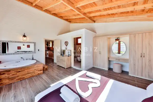 With its sheltered pool and garden area, it is among the ideal rental villa options for those who want to spend their holiday away from the outside and for religious families.