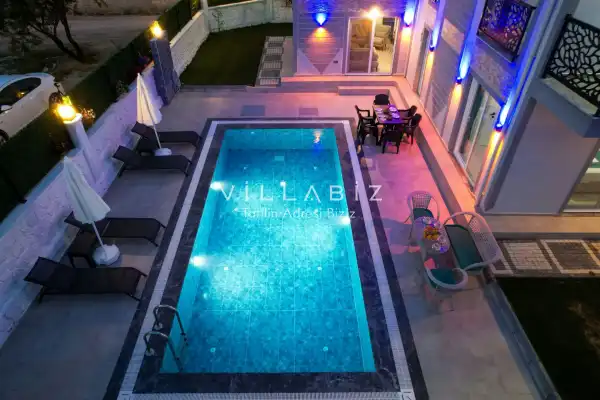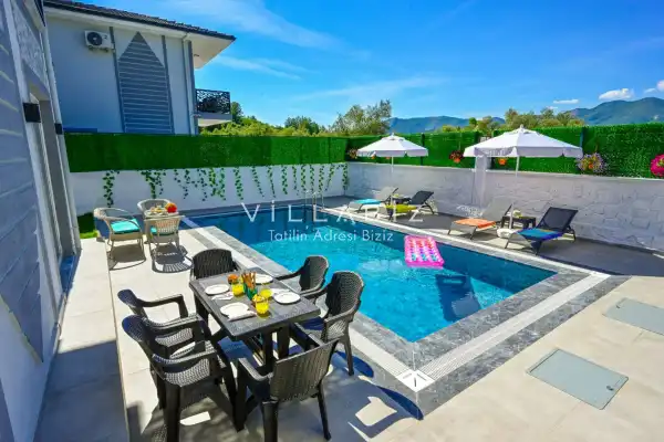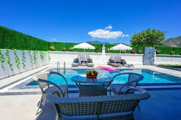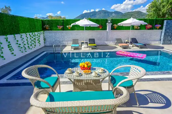 Villa Üzümlü is a very sheltered villa with a cute garden and pool located in Fethiye Üzümlü area. Since the detached swimming pool is very sheltered from the outside, our guests who want to be away from attention on holiday will be comfortable.
