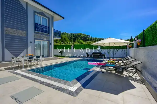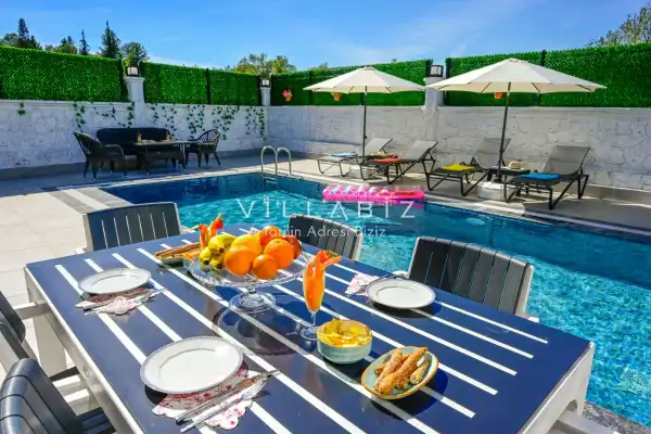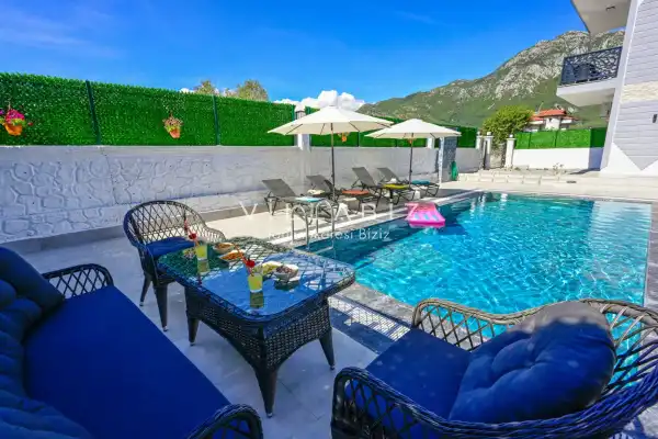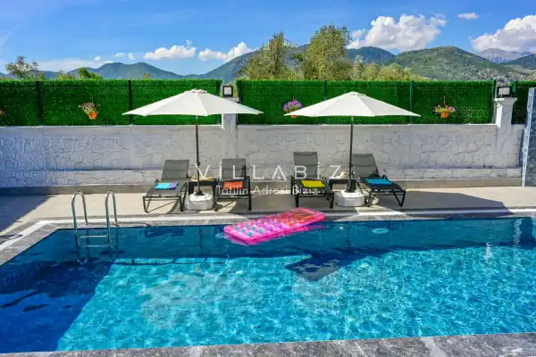 Villa Üzümlü 2 is a very sheltered villa with a cute garden and pool located in Fethiye Üzümlü area. Since the detached swimming pool is very sheltered from the outside, our guests who want to be away from attention on holiday will be comfortable.
