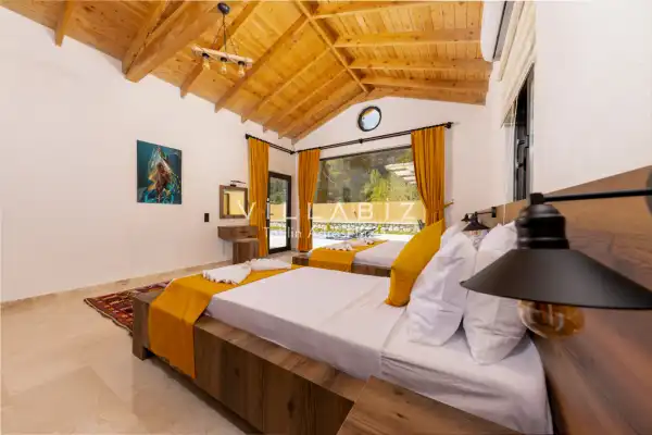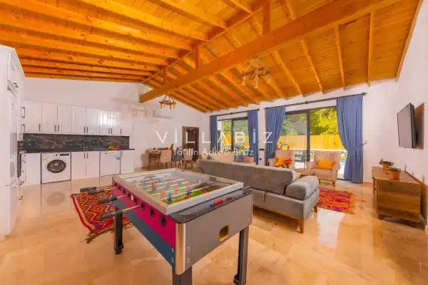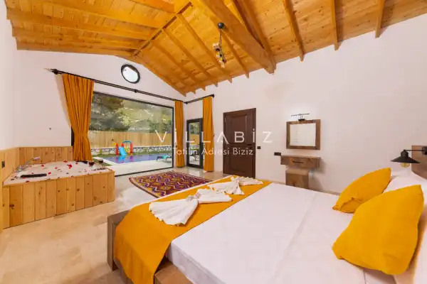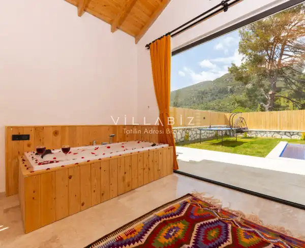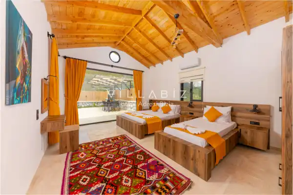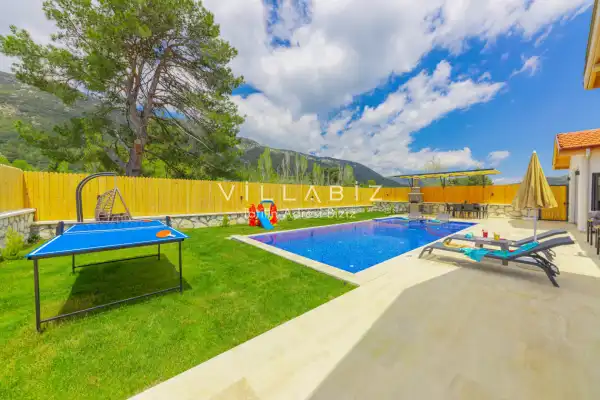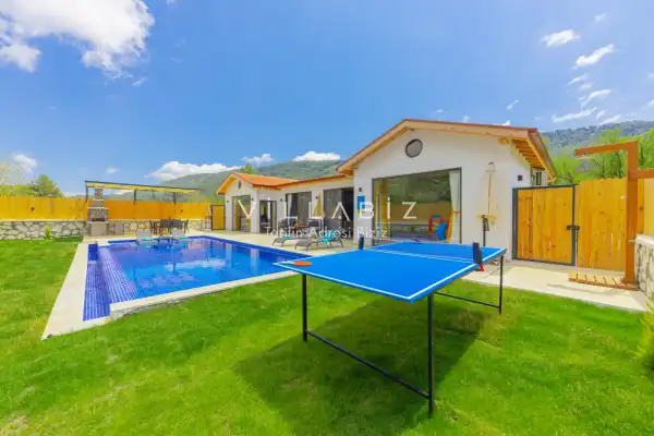Our villa is located in Kalkan/Sarıbelen, Antalya. With its quiet location in nature and away from the noise of 5-star hotels, it offers a holiday opportunity in the inspiring serenity of nature. It opens the doors of a peaceful holiday in the comfort of home with its furniture designed by giving importance to its authentic structure and historical texture. * Since our villa has a location in nature, in the surrounding area; butterfly, insect, fly etc. There is a possibility, it is quite natural. With its sheltered pool and garden area, it is among the ideal rental villa options for those who want to spend their holiday away from the outside and for families who are fanatical. Villa Valley has 2 bedrooms in the villa with a capacity of 4 people. The villa has a bathroom in both rooms and a jacuzzi in the master bedroom. It has an open kitchen and its own garden. The kitchen has a dishwasher, refrigerator, built-in oven, and almost all the utensils needed in the kitchen. There is a private pool in the garden of the villa. Barbecue, table, chairs, sun loungers and umbrellas allow you to enjoy the garden without limits. There is also a table tennis children's playground in the large garden area. While there is a table football seating group, television and furniture in the living room, there is separate air conditioning for all rooms. Extras: The villa is delivered to the guests in a clean manner and cleaning is done at the end of the first week for two-week stays. Bed linen and towel changes are also made during these cleanings. Important informations: Electricity, water, gas fees are included in the rental price of the villa. Also, no fee is required. Extra cleaning, extra new sheets and towels, rental car, guidance services, health etc. Insurance is not included in the prices. Damage Deposit: Damage, loss, broken, dump, etc. A deposit of 4000 TL is required at the entrance. The deposit is returned at the exit of the villa if there is no problem such as broken, damaged or lost.