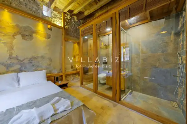 It is located in Kayaköy, which is considered the most popular historical and touristic place in Fethiye and hosts old historical Greek houses. Villa Yusuf Paşa Konağı has a large garden among greenery. With its sheltered pool and garden area, it is among the ideal rental villa options for those who want to spend their holidays away from outside eyes and for fanatic families. You can also relieve the tiredness of the year and enjoy your holiday in the best way at Villa Yusuf Paşa Konağı