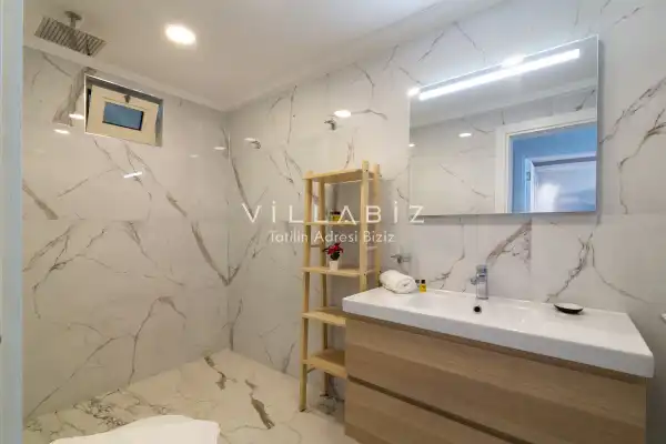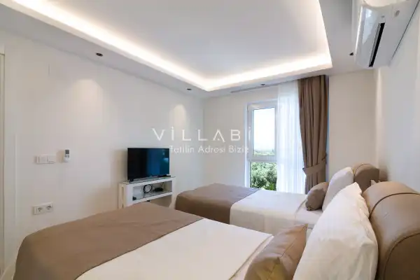Toplam 2 yatak odasından oluşmuş, 4 kişi konaklama kapasitesine sahiptir. Çekirdek aileler ve arkadaş grupları için oldukça idealdir. Oldukça şık ve modern bir şekilde döşenmiş olan villamızda misafirlerimiz için her şey düşünülmüştür. Havuz terasında bulunan şezlonglarda güneşlenebilir, bahçe masasında muhteşem yemekler yiyebilir, salıncakta sallanıp keyifli dakikalar geçirebilirsiniz.