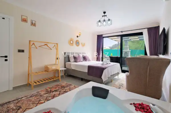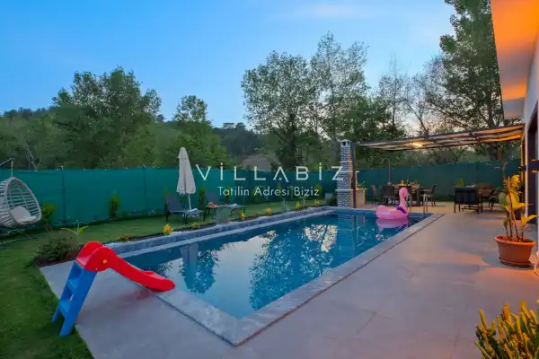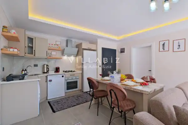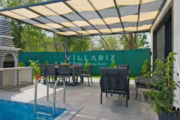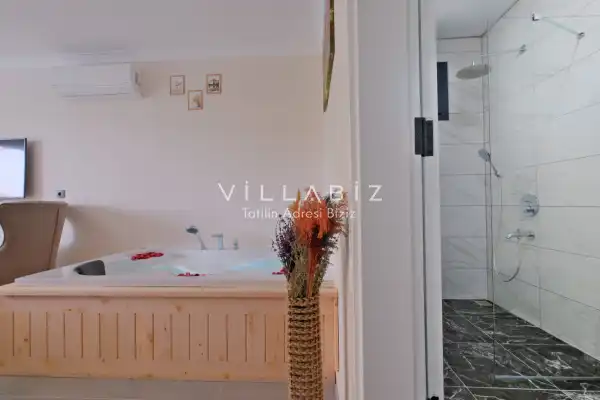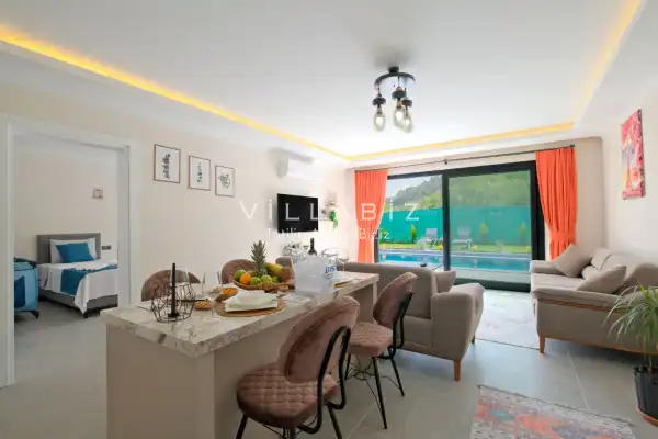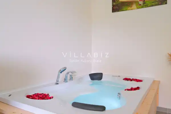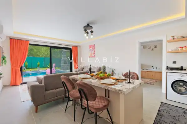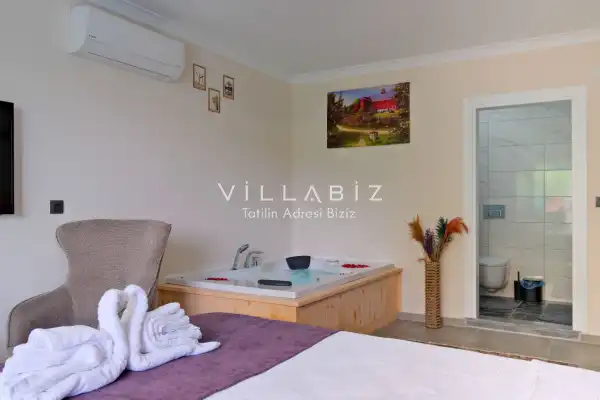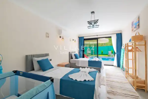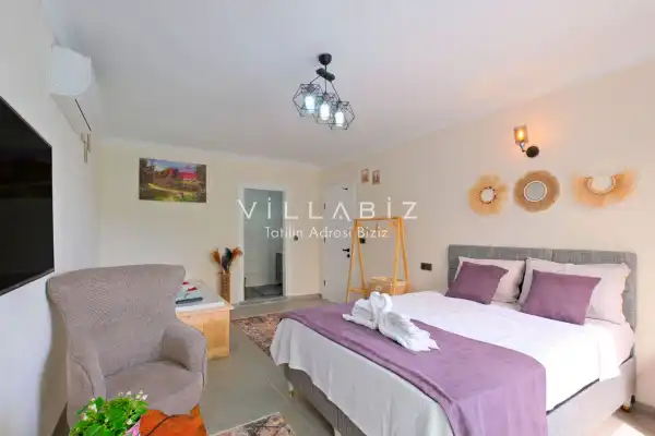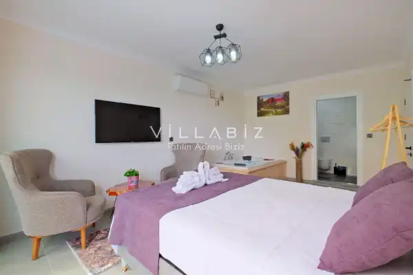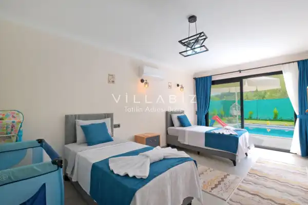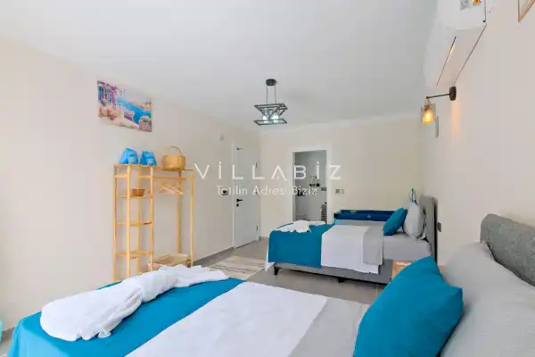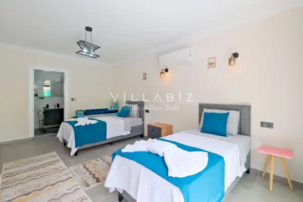 Toplam 2 yatak odasından oluşmuş, 6 kişi konaklama kapasitesine sahiptir. Geniş aileler , arkadaş grupları için oldukça idealdir. Oldukça şık ve modern bir şekilde döşenmiş olan villamızda misafirlerimiz için her şey düşünülmüştür. Havuz terasında bulunan şezlonglarda güneşlenebilir, bahçe masasında muhteşem yemekler yiyebilir, salıncakta sallanıp keyifli dakikalar geçirebilirsiniz.