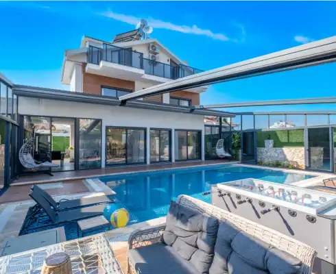 Not : Villamızın dış havuzunda açılır-kapanır sistem mevcuttur. Havuz ısıtma ücreti 2000 tl'dir. Diğer aylarda havuz ısıtma ücreti değişiklik gösterebilir.