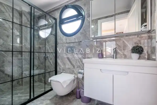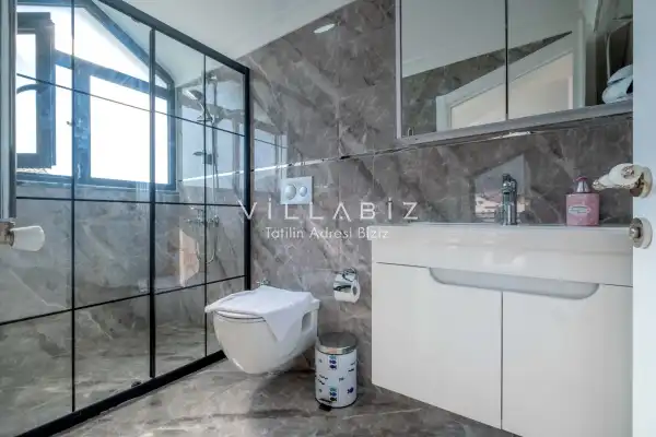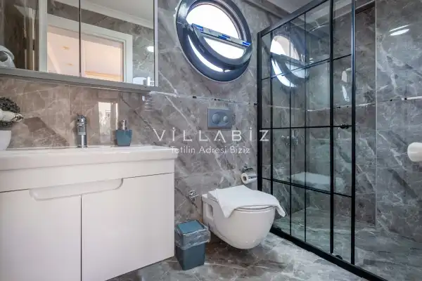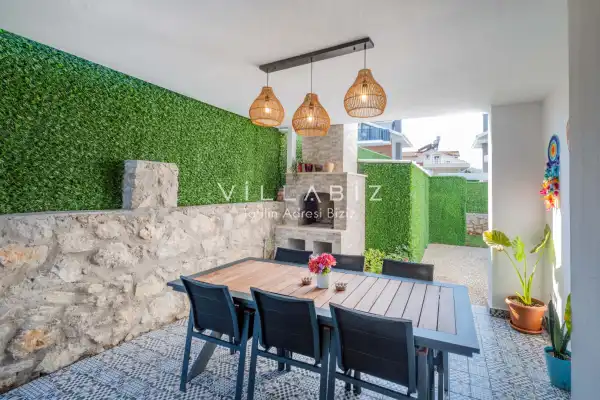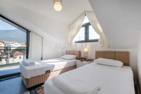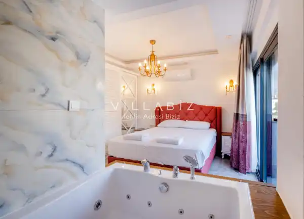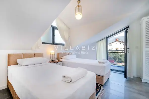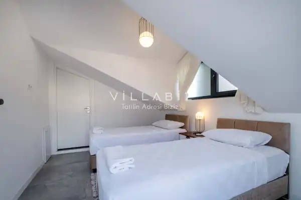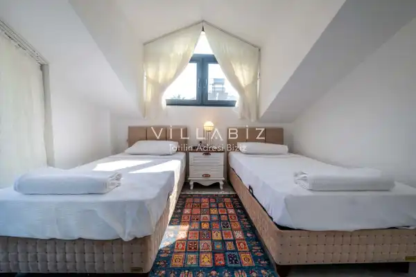 Toplam 4 yatak odasından oluşmuş, 8 kişi konaklama kapasitesine sahiptir. Geniş aileler ve kalabalık arkadaş grupları için oldukça idealdir. Oldukça şık ve modern bir şekilde döşenmiş olan villamızda misafirlerimiz için herşey düşünülmüştür. Havuz terasında bulunan şezlonglarda güneşlenebilir, bahçe masasında muhteşem yemekler yiyebilir, salıncakta sallanıp keyifli dakikalar geçirebilirsiniz.