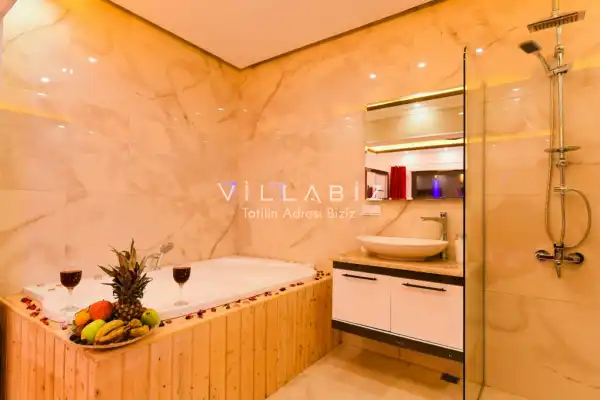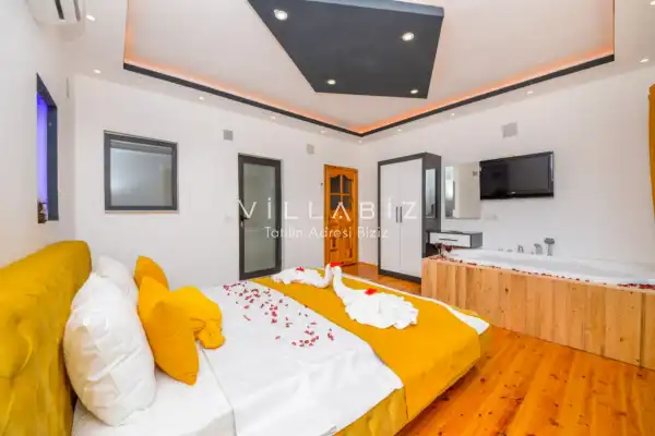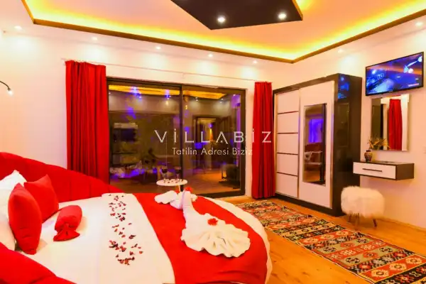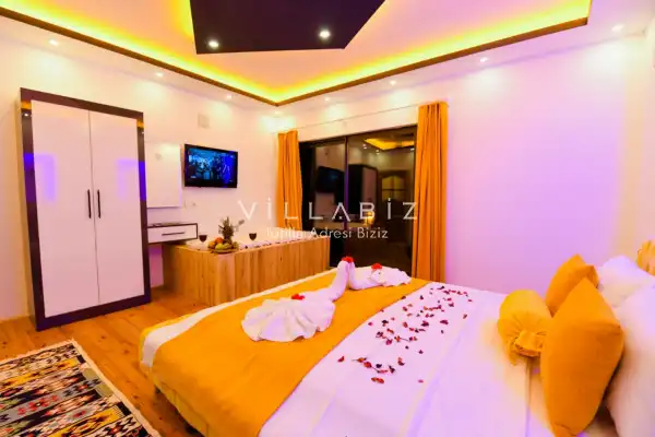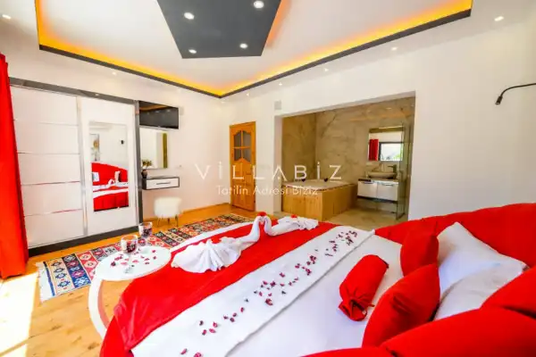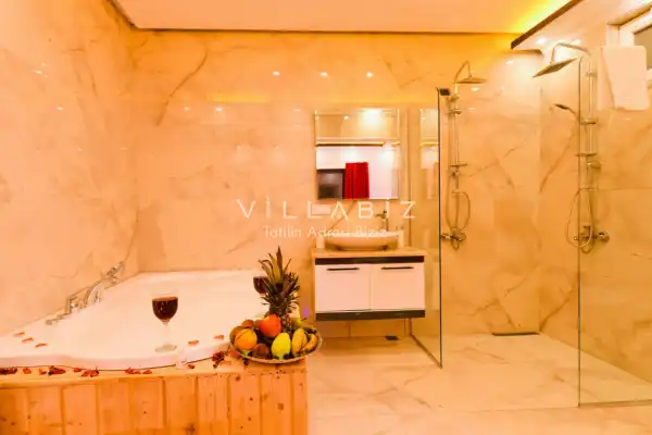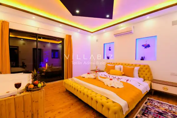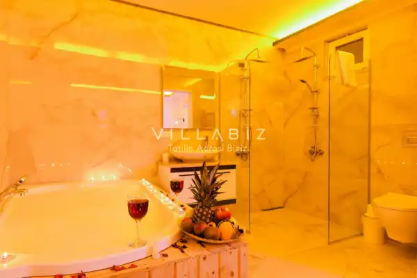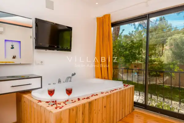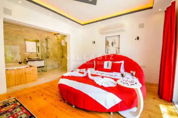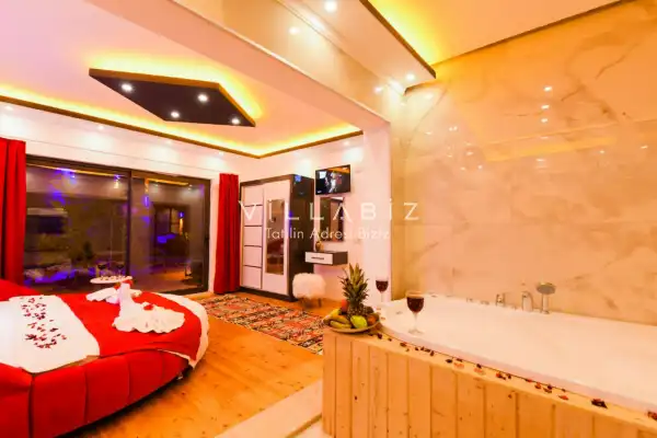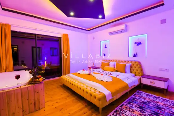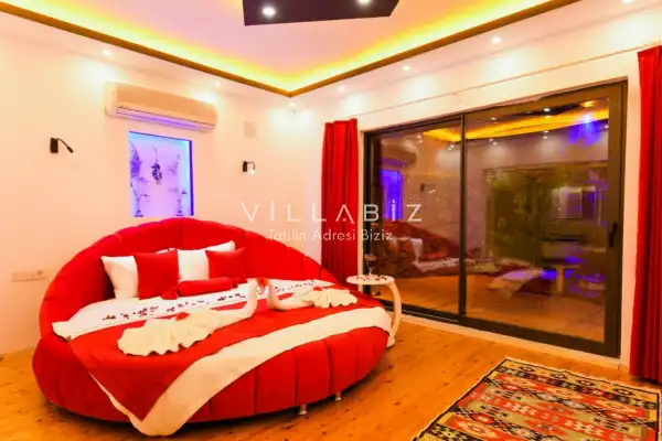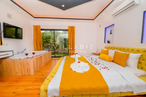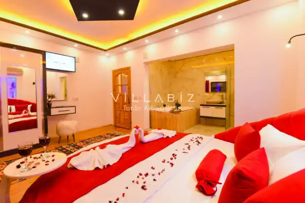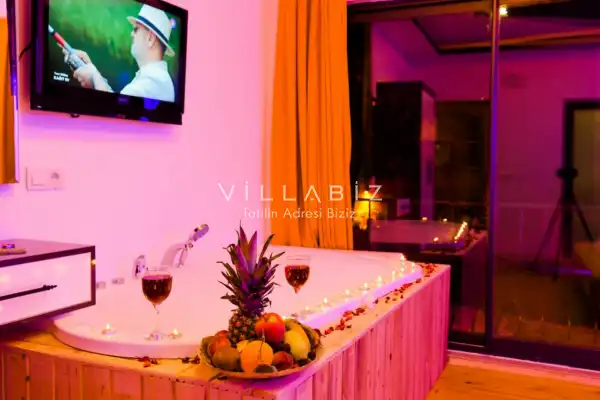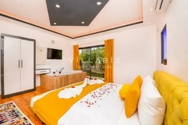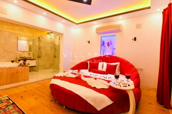 Villa Ahsen, 4 kişi konaklama kapasitesine sahip 2 yatak odalı villa seçeneklerimizdendir. Korunaklı havuz alanına sahip villamız balayı çiftleri ve çekirdek aileler için oldukça idealdir. Villamızda aynı 2 yatak odasında da jakuzi mevcuttur.
