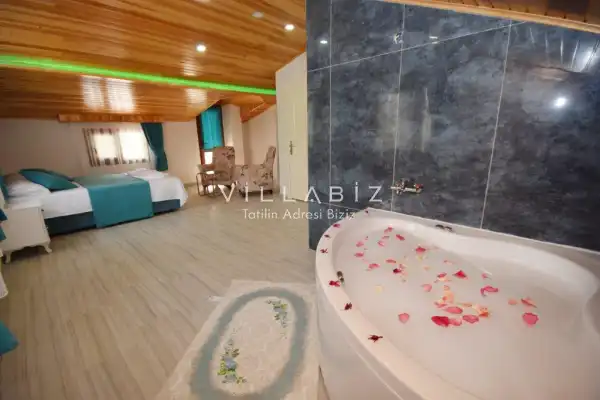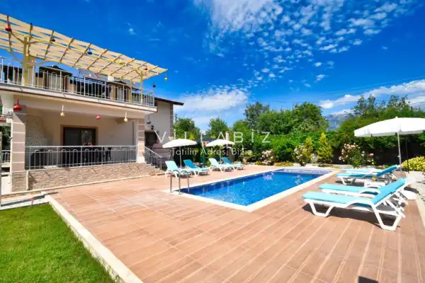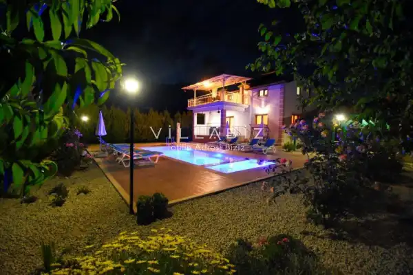 Fethiye´nin en gözde tarihi ve turistik yeri sayılan, eski tarihi Rum evlerine ev sahipliği yapan Kayaköy mevkisinde konumlanmaktadır. Villa yeşillikler arasında geniş bir bahçeye sahiptir. Korunaklı havuz ve bahçe alanı ile dış gözlerden uzak tatilini geçirmek isteyenler ve mutaassıp aileler için oldukça ideal kiralık villa seçenekleri arasında yer almaktadır. Sizlerde yılın yorgunluğunu, tatilin keyfini en güzel şekilde çıkarabilirsiniz.