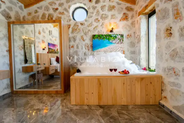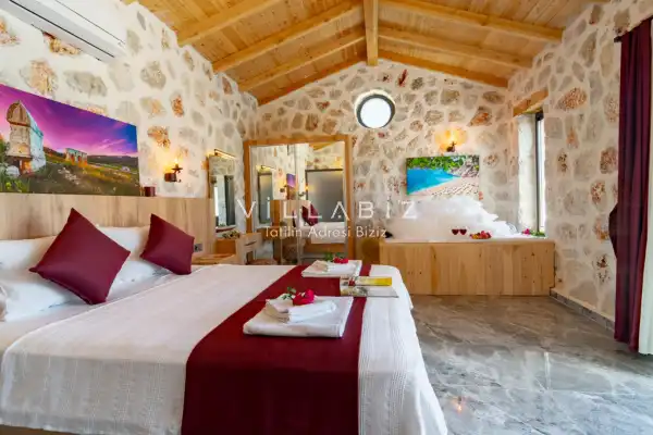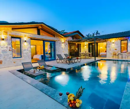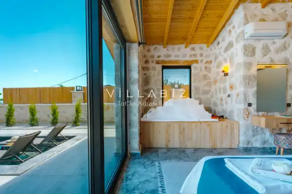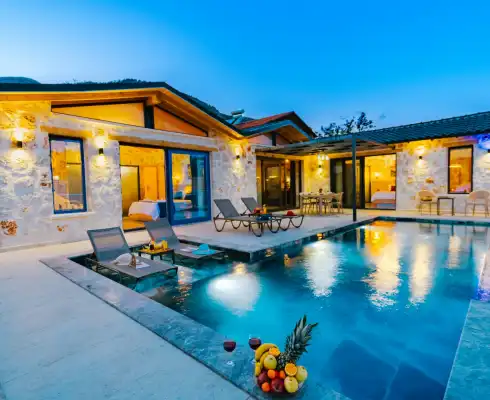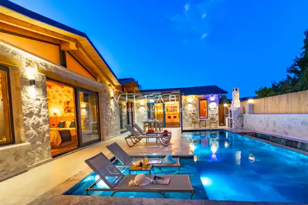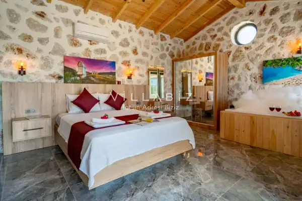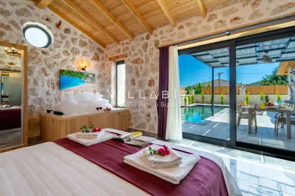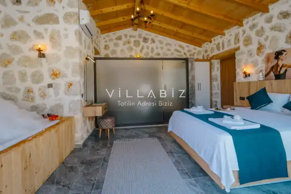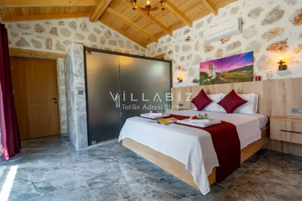Toplam 2 yatak odasından oluşmuş, 4 kişi konaklama kapasitesine sahiptir. Çekirdek aileler ve arkadaş grupları ve balayı çiftleri için oldukça idealdir. Oldukça şık ve modern bir şekilde döşenmiş olan villamızda misafirlerimiz için her şey düşünülmüştür. Havuz terasında bulunan şezlonglarda güneşlenebilir, bahçe masasında muhteşem yemekler yiyebilir, salıncakta sallanıp keyifli dakikalar geçirebilirsiniz.