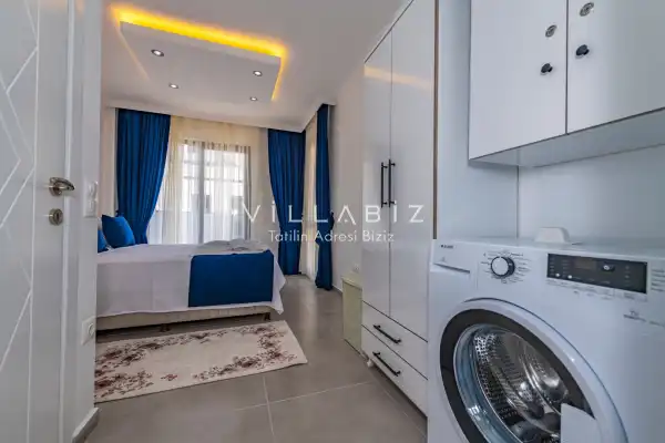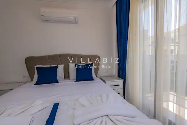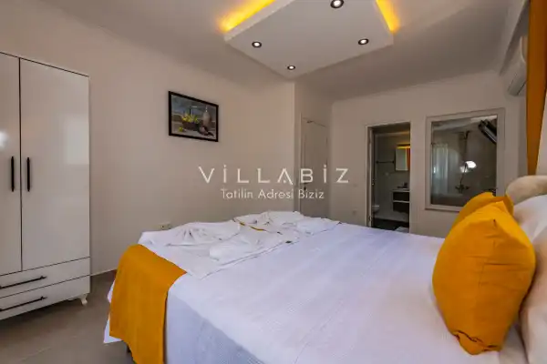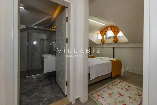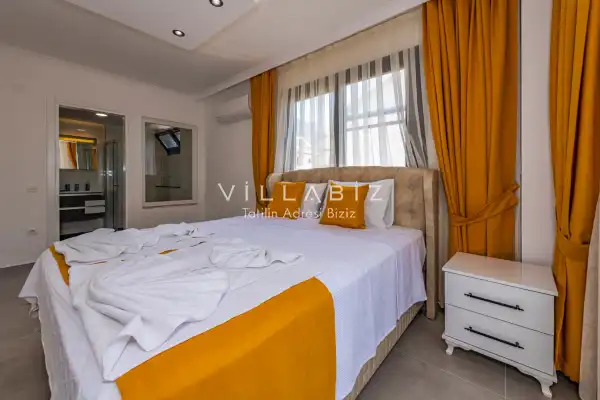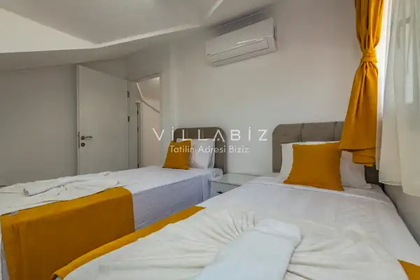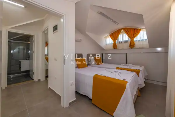 Toplam 4 yatak odasından oluşmuş, 8 kişi konaklama kapasitesine sahip olan geniş aileler ve kalabalık arkadaş grupları için oldukça idealdir. Oldukça şık ve modern bir şekilde döşenmiş olan villamızda misafirlerimiz için herşey düşünülmüştür. Havuz terasında bulunan şezlonglarda güneşlenebilir, bahçe masasında muhteşem yemekler yiyebilir, salıncakta sallanıp keyifli dakikalar geçirebilirsiniz.Modern iç ve dış mimarisi, özenle dizayn edilmiş ekipmanları ve geniş havuz - bahçe alanı değerli misafirlerimize konforlu bir tatil imkanı sunmaktadır.