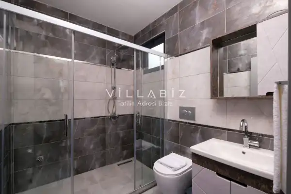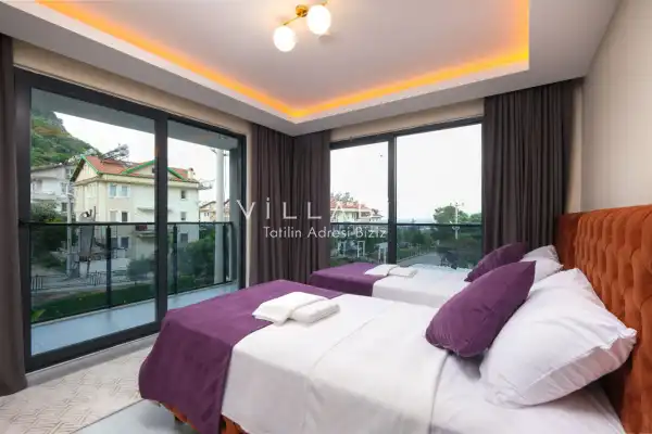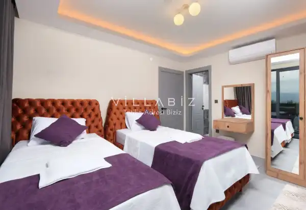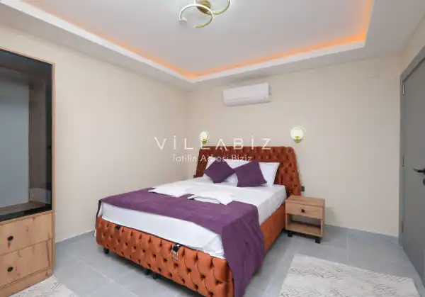 Toplam 3 yatak odasından oluşmuş, 6 kişi konaklama kapasitesine sahiptir. Geniş aileler ve kalabalık arkadaş grupları için oldukça idealdir. Oldukça şık ve modern bir şekilde döşenmiş olan villamızda misafirlerimiz için her şey düşünülmüştür. Havuz terasında bulunan şezlonglarda güneşlenebilir, bahçe masasında muhteşem yemekler yiyebilir, salıncakta sallanıp keyifli dakikalar geçirebilirsiniz.